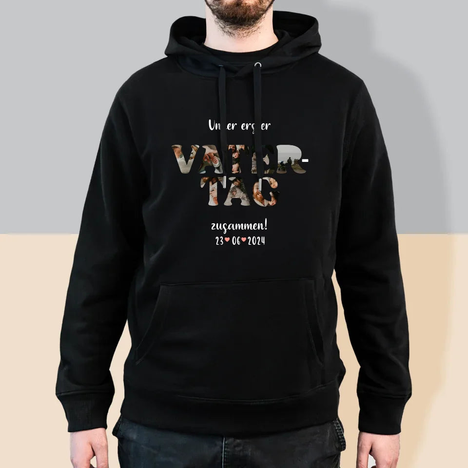 Buchstaben-Collage: Unser Erster Vatertag Zusammen - Kapuzenpullover für Herren