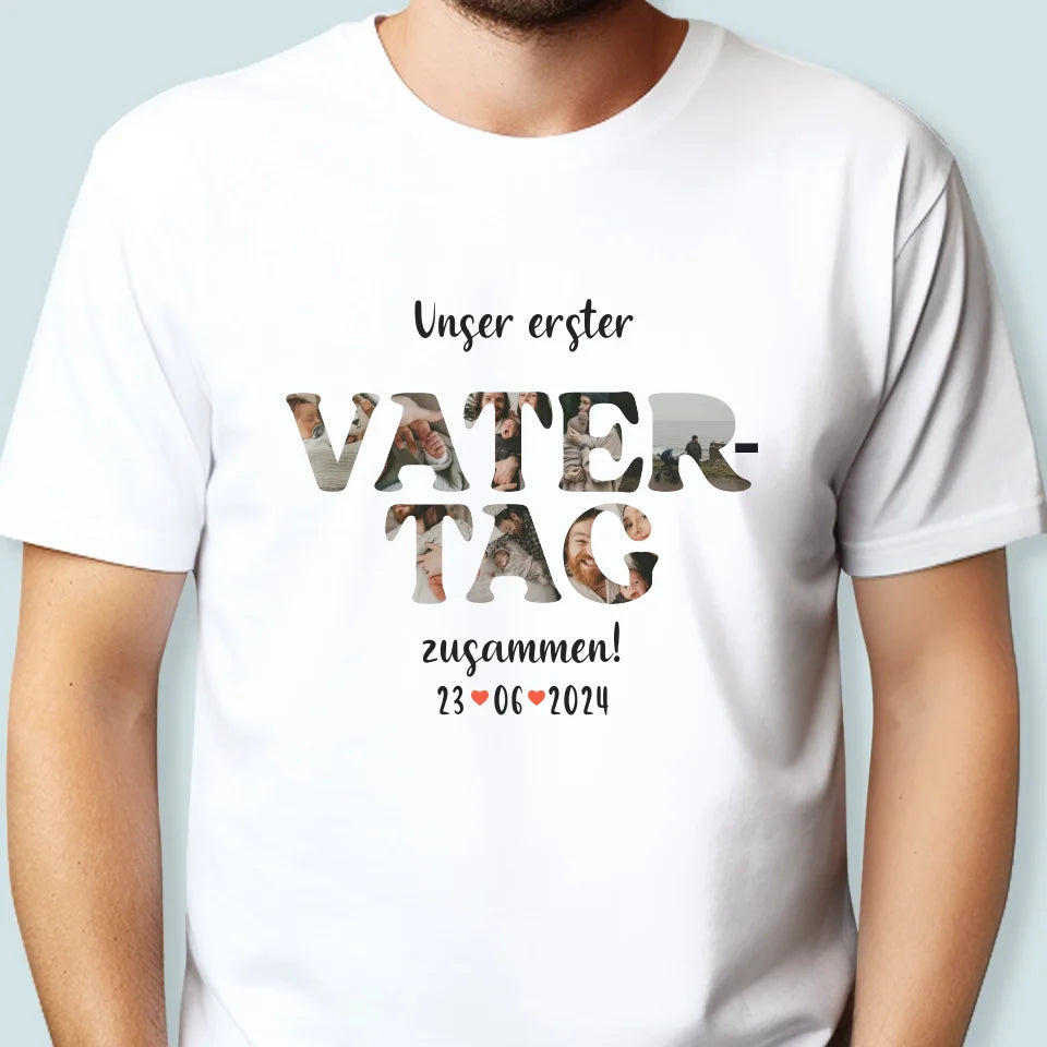 Buchstaben-Collage: Unser Erster Vatertag Zusammen - T-Shirt für Herren