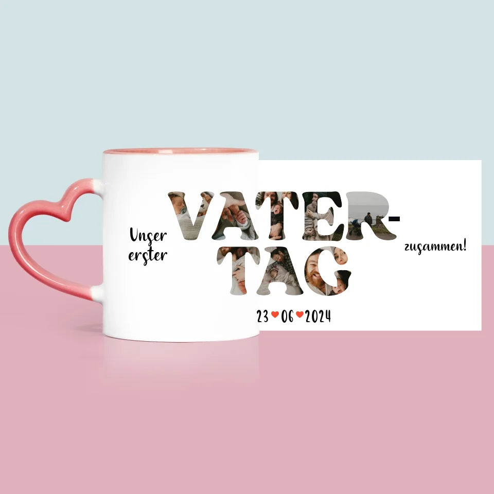 Buchstaben-Collage: Unser Erster Vatertag Zusammen - Zaubertasse