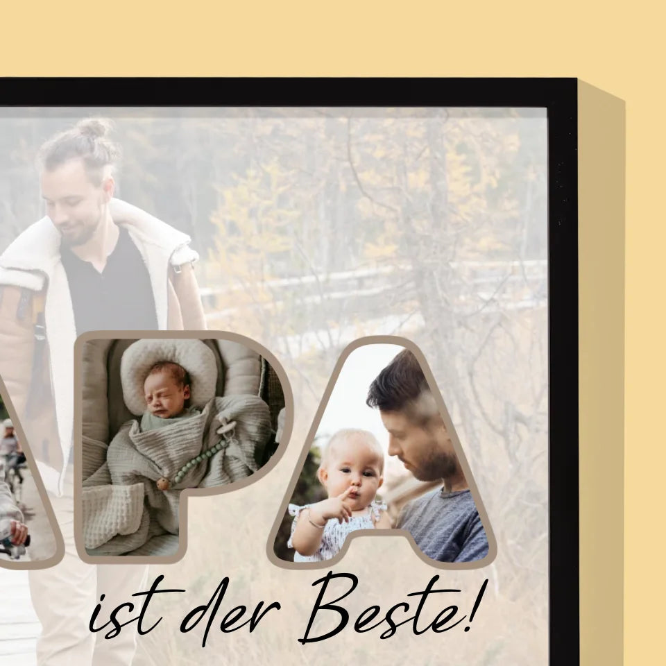 Buchstaben-Collage: Unser Papa Ist Der Beste - Druck mit Rahmen 30x40 - Horizontal