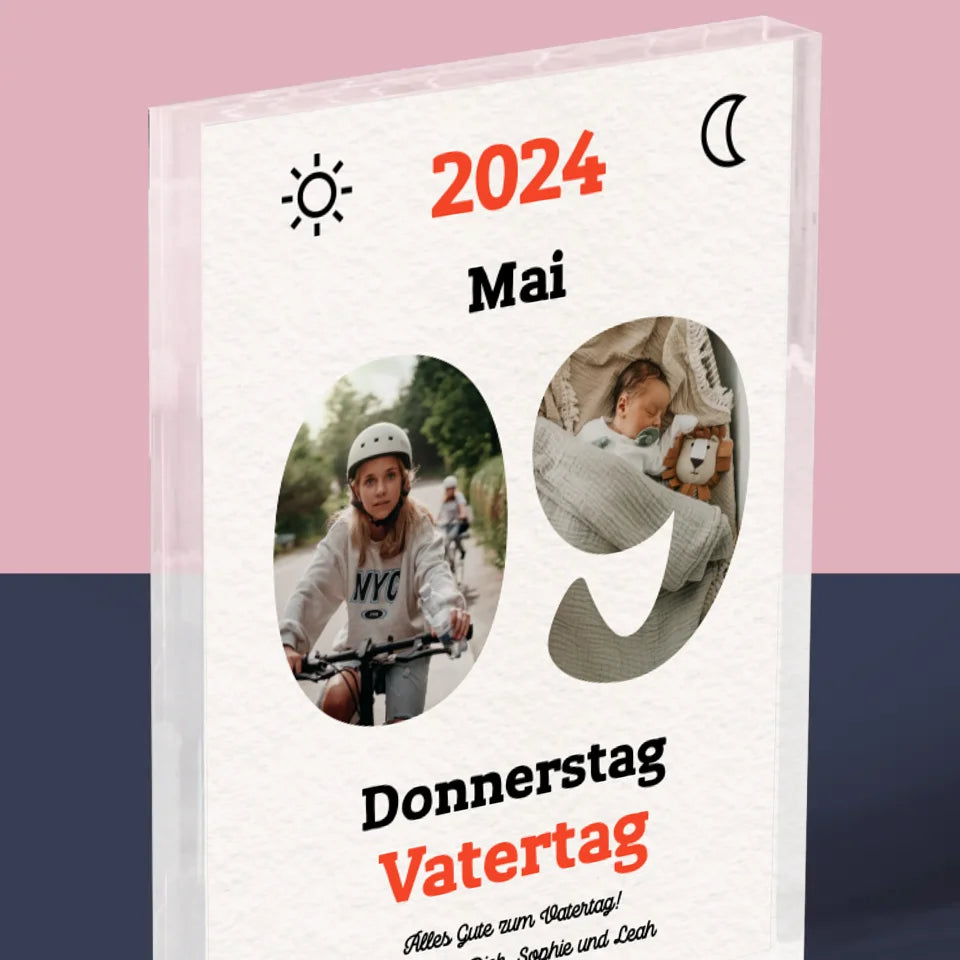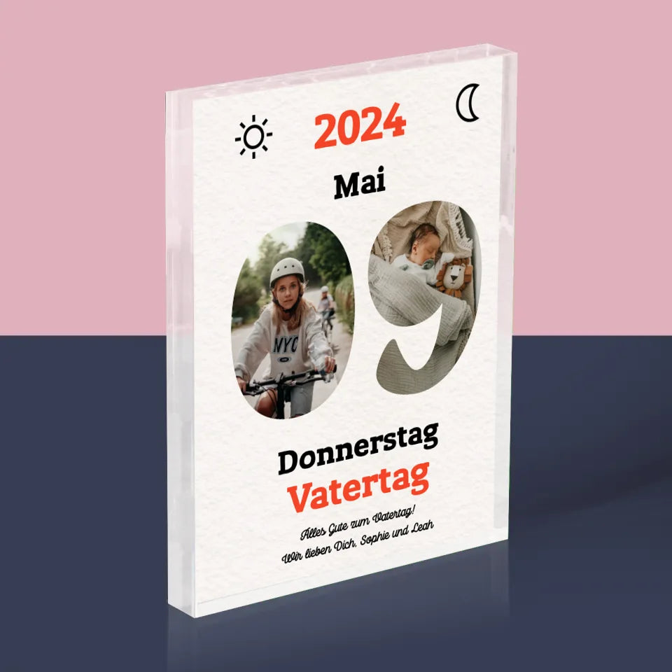 Buchstaben-Collage: Vatertag Kalenderblatt - Acrylblock - Vertikal