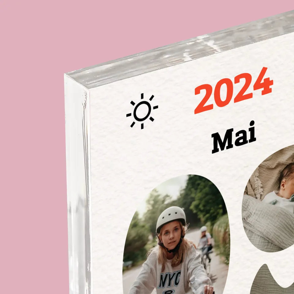 Druck auf einem 2 cm dicken, klaren Acrylblock (Plexiglas), individuell personalisiert.