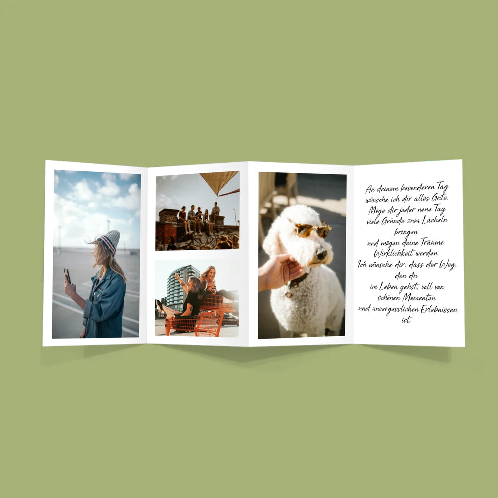 Harmonikaartig gefaltete Bilderreihe mit personalisiertem Design nach Ihrer Wahl.