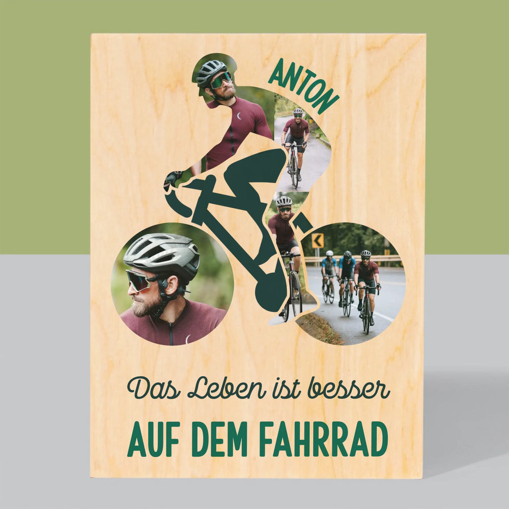 Form-Collage: Das Leben Ist Besser Auf Dem Fahrrad - Druck auf Holz - Vertikal