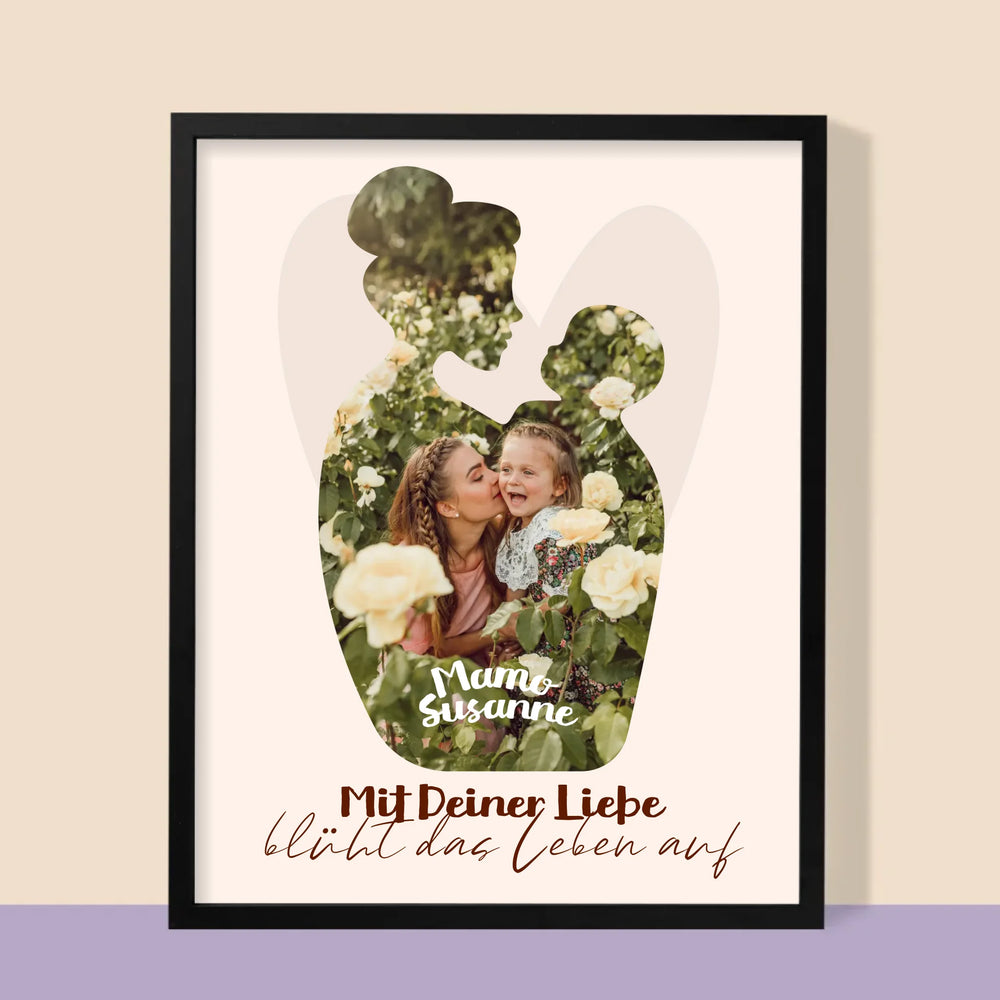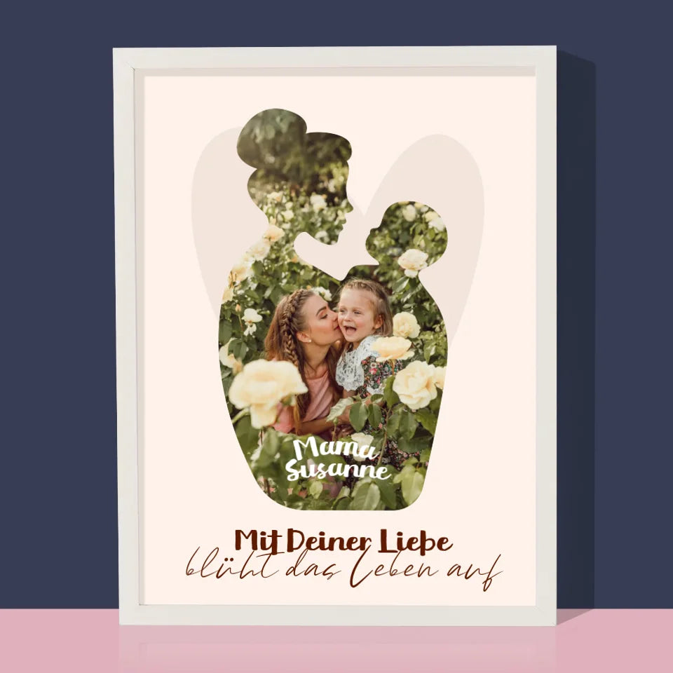 Form-Collage: Deine Liebe - Druck mit Rahmen - Vertikal