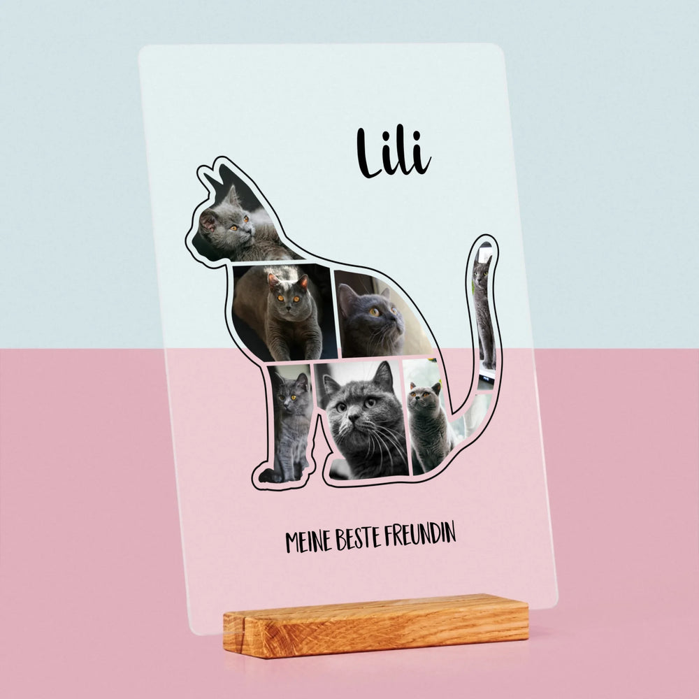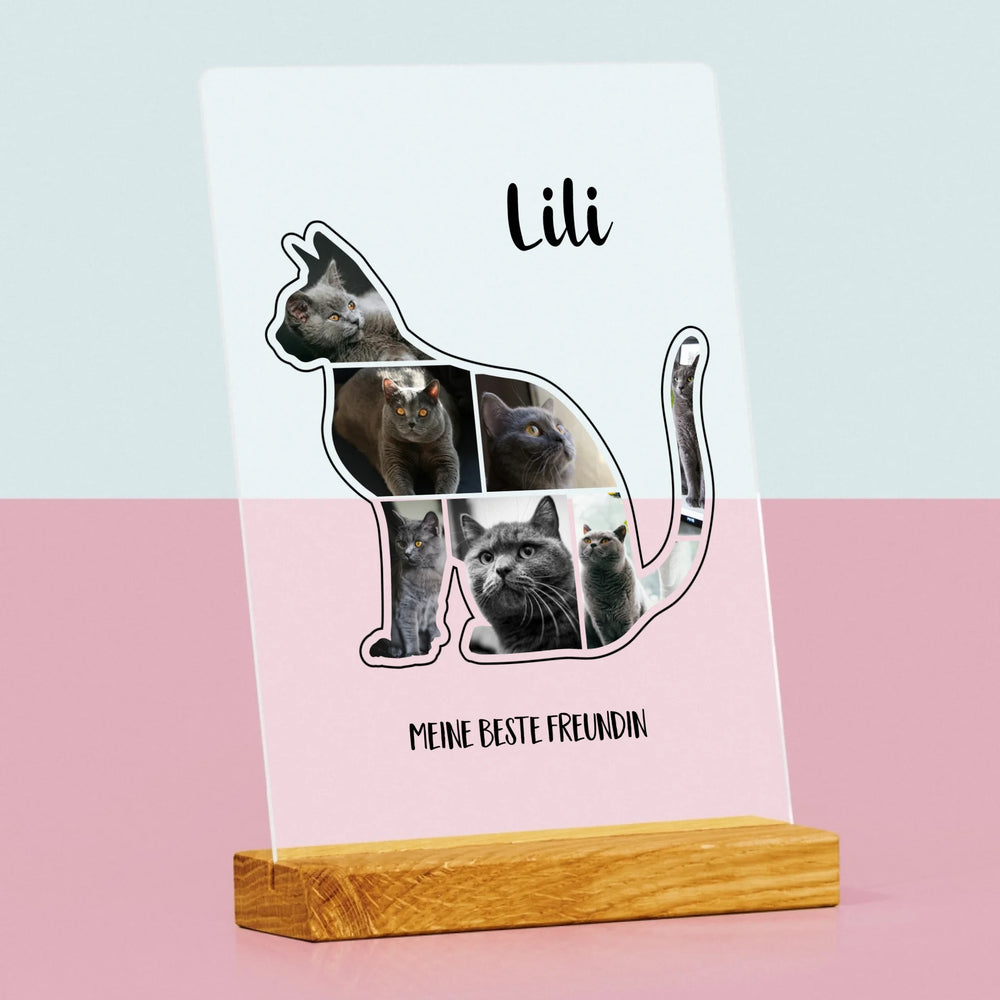 Form-Collage: Die Katze Der Beste Freund - Druck auf Acrylglas mit LED-Beleuchtung