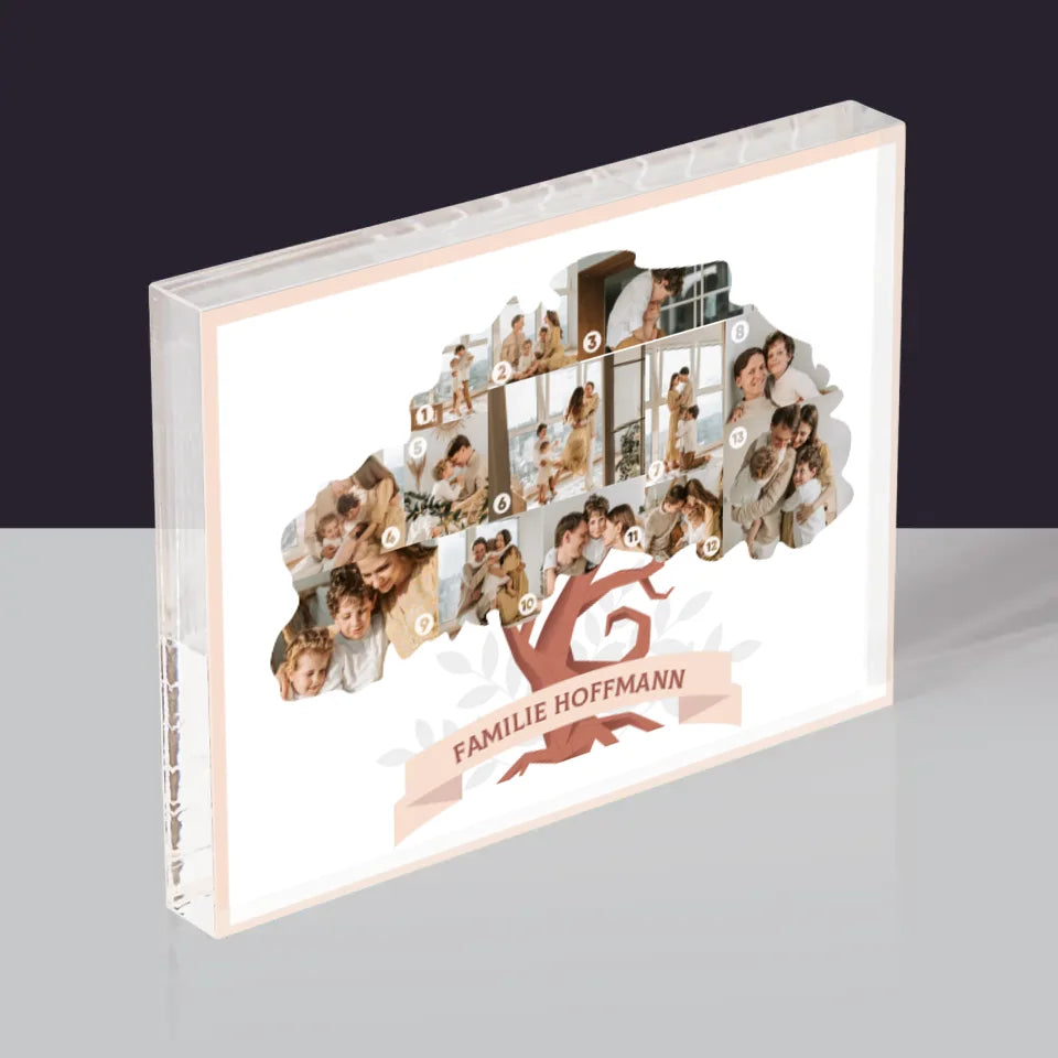 Form-Collage: Familienstammbaum - Acrylblock - Horizontal
