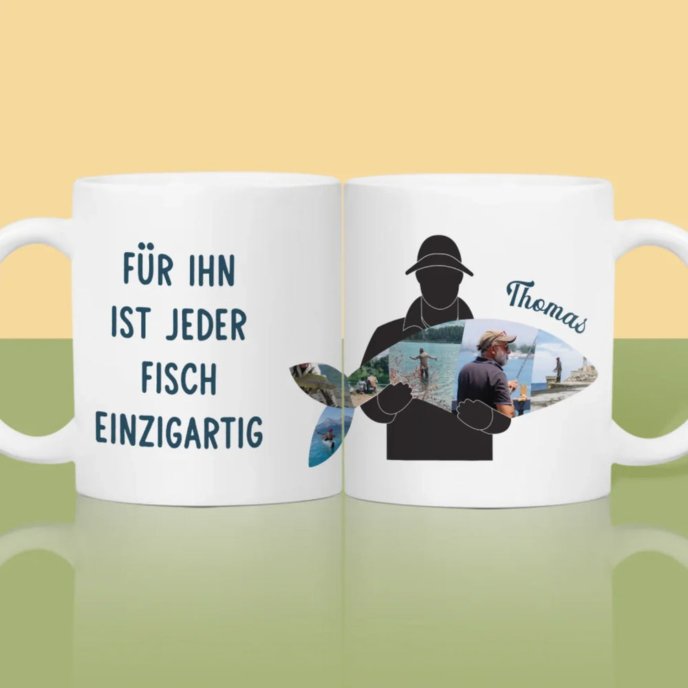 Form-Collage: Jeder Fisch - Tasse