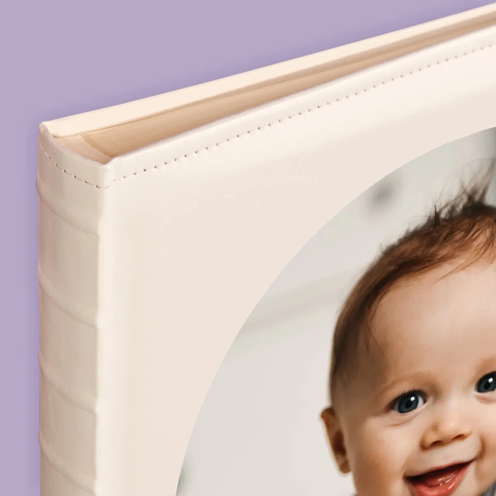 Einband aus Eco-Leder, leicht glänzend, in Weiß.