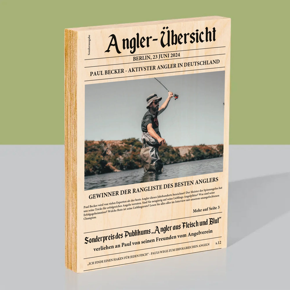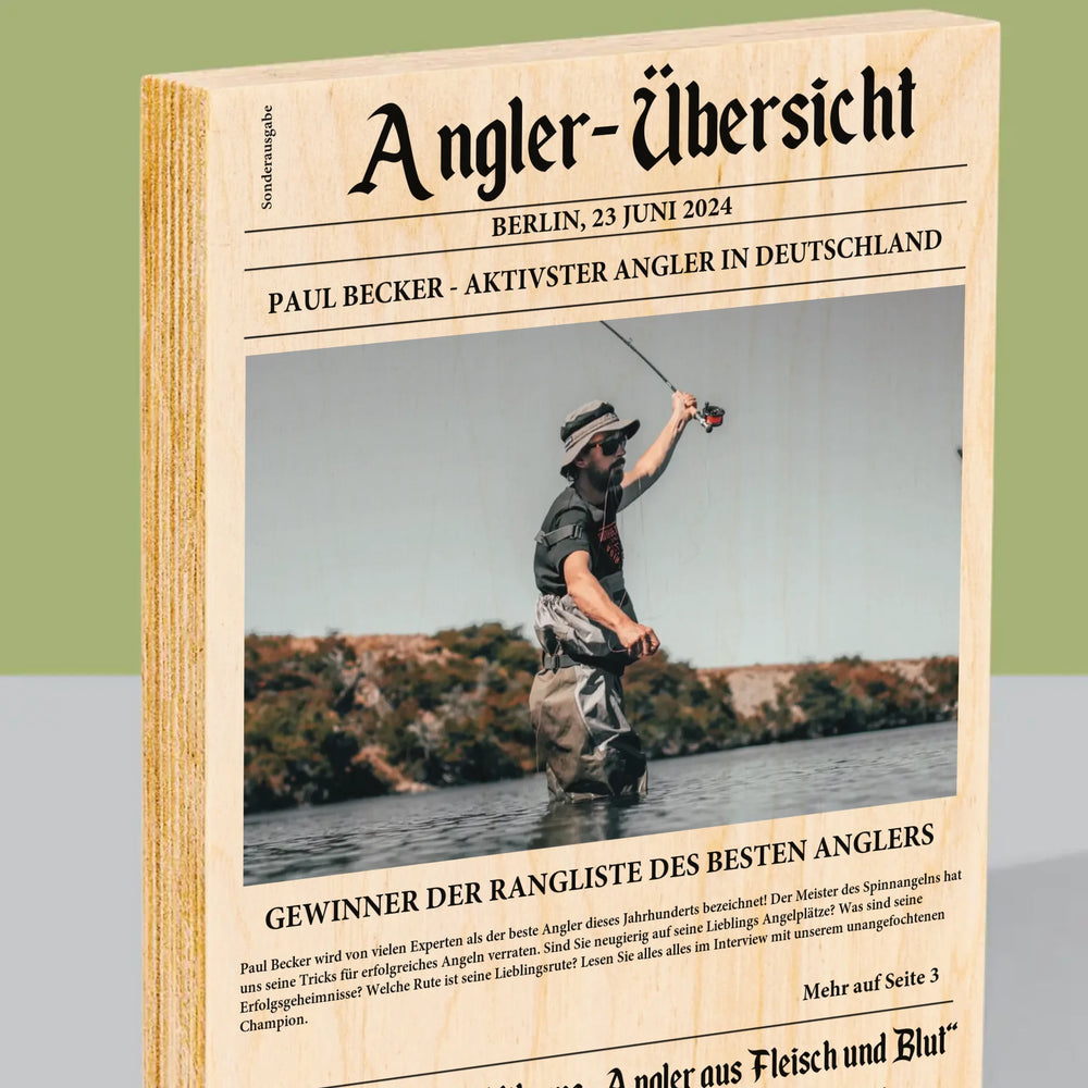 Foto Und Unterschrift: Angler- Übersicht - Druck auf Holz - Vertikal