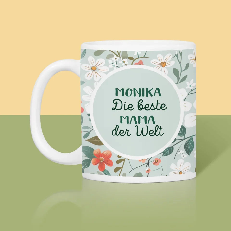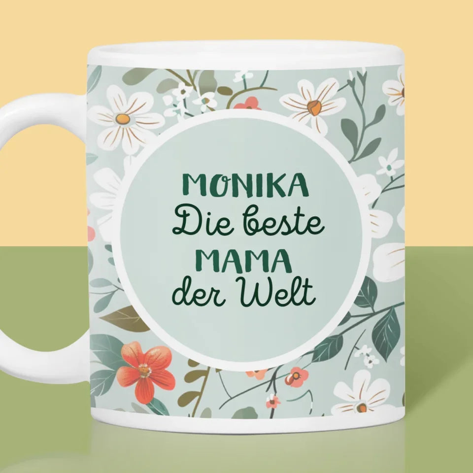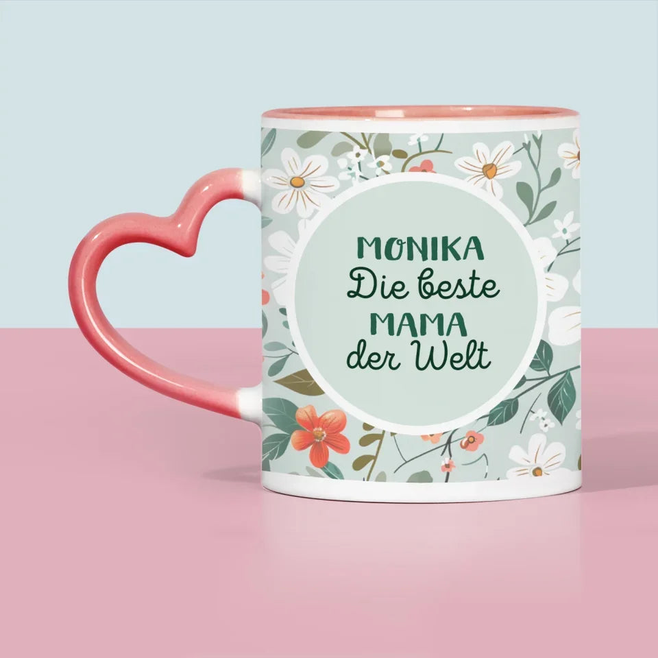 Foto Und Unterschrift: Beste Mama Blumen - Tasse Herz