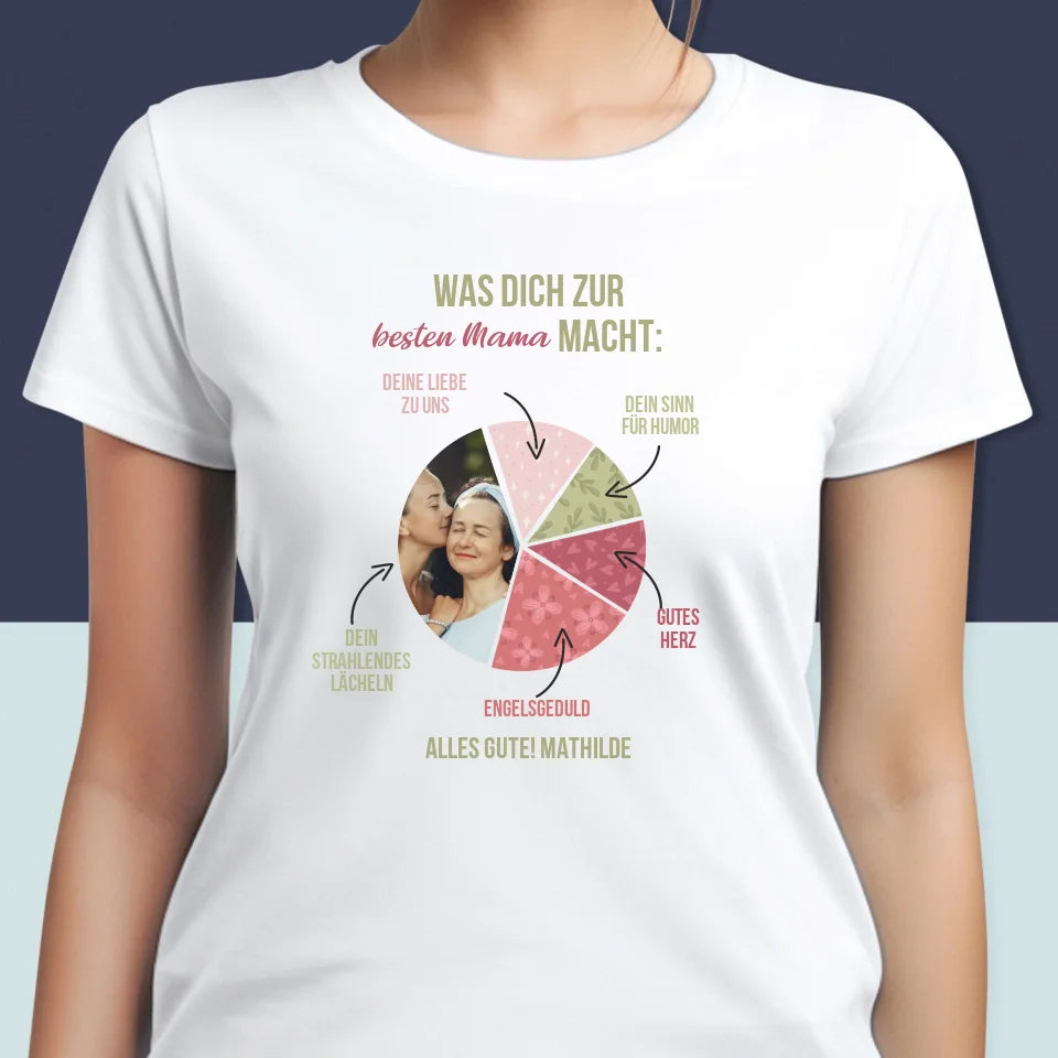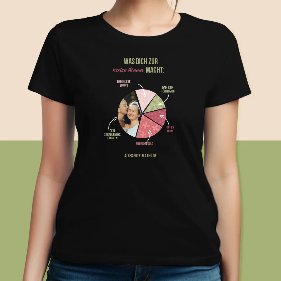 Foto Und Unterschrift: Beste Mama Eigenschaften - T-Shirt für Damen