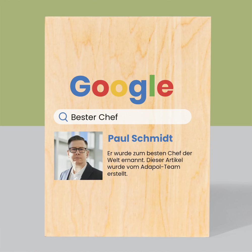 Foto Und Unterschrift: Bester Chef Google Ergebnis - Druck auf Holz - Vertikal