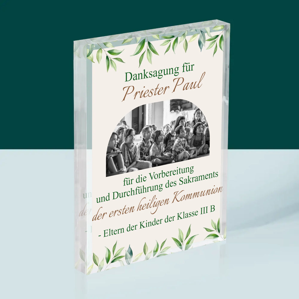 Foto Und Unterschrift: Dank An Den Priester-Kommunion - Acrylblock - Vertikal