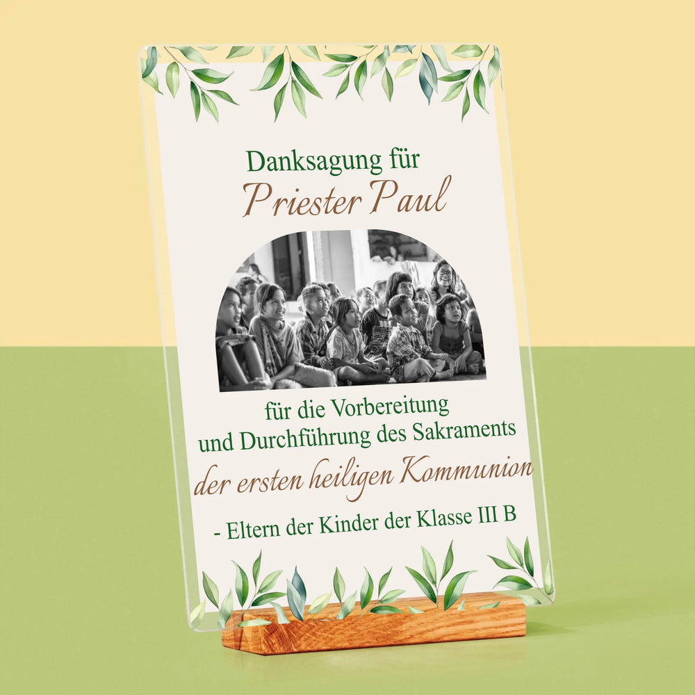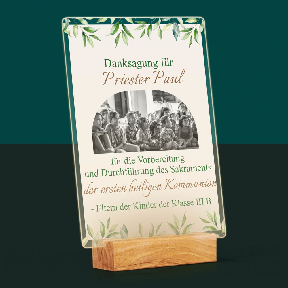 Foto Und Unterschrift: Dank An Den Priester-Kommunion - Druck auf Acrylglas mit LED-Beleuchtung