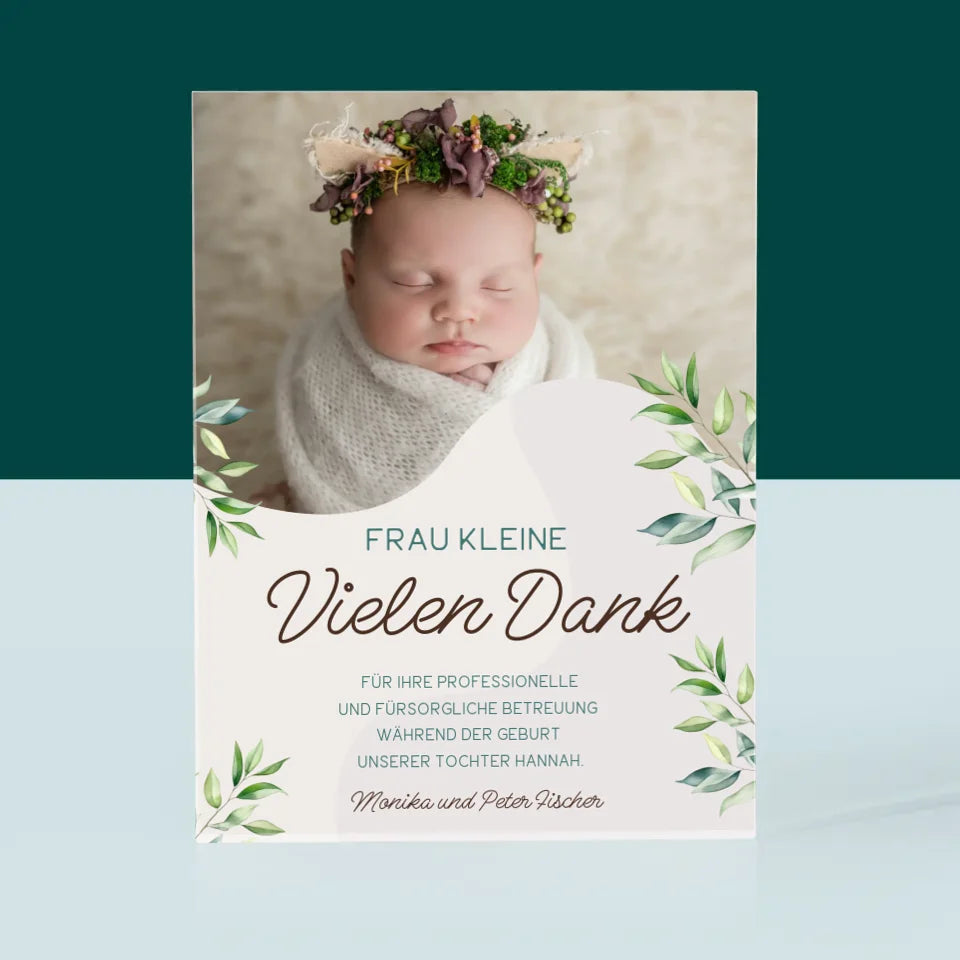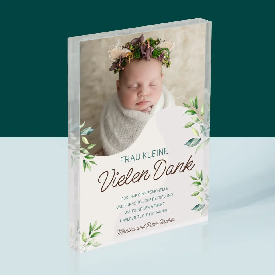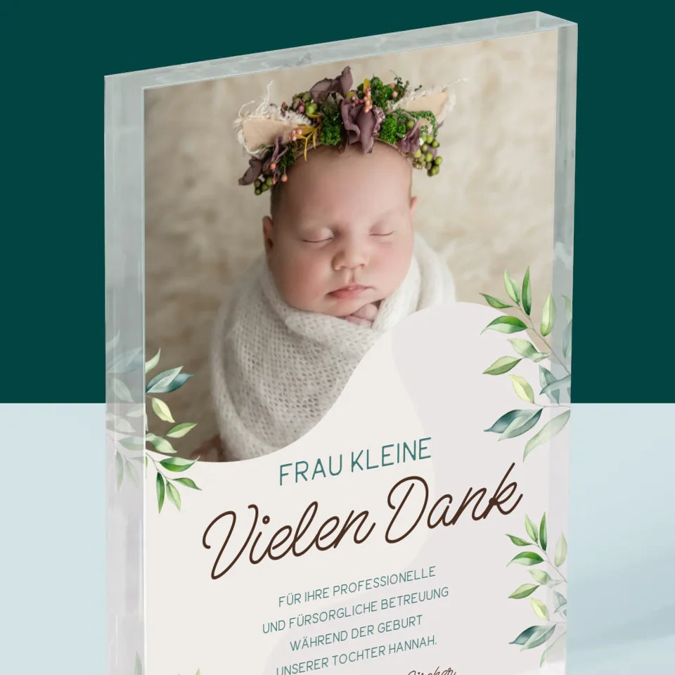 Foto Und Unterschrift: Danke An Hebamme - Acrylblock - Vertikal