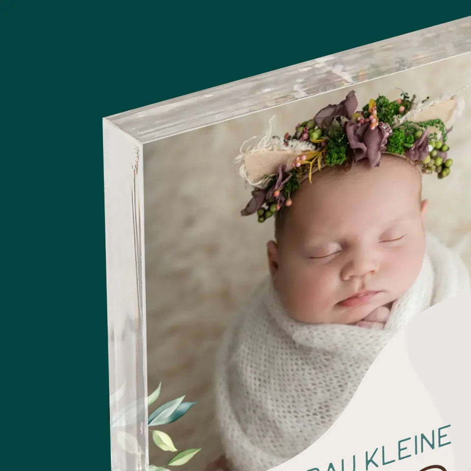 • Druck auf einem 2 cm dicken, klaren Acrylblock (Plexiglas), individuell personalisiert.