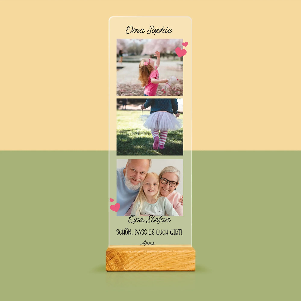 Dank des eleganten Holzständers kann der Druck überall platziert werden und ist stabil.