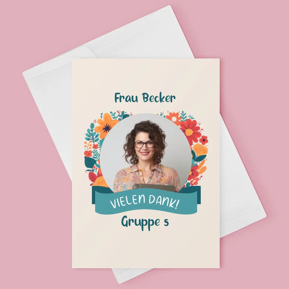 Foto Und Unterschrift: Danke An Kindergärtnerin - Glückwunschkarte
