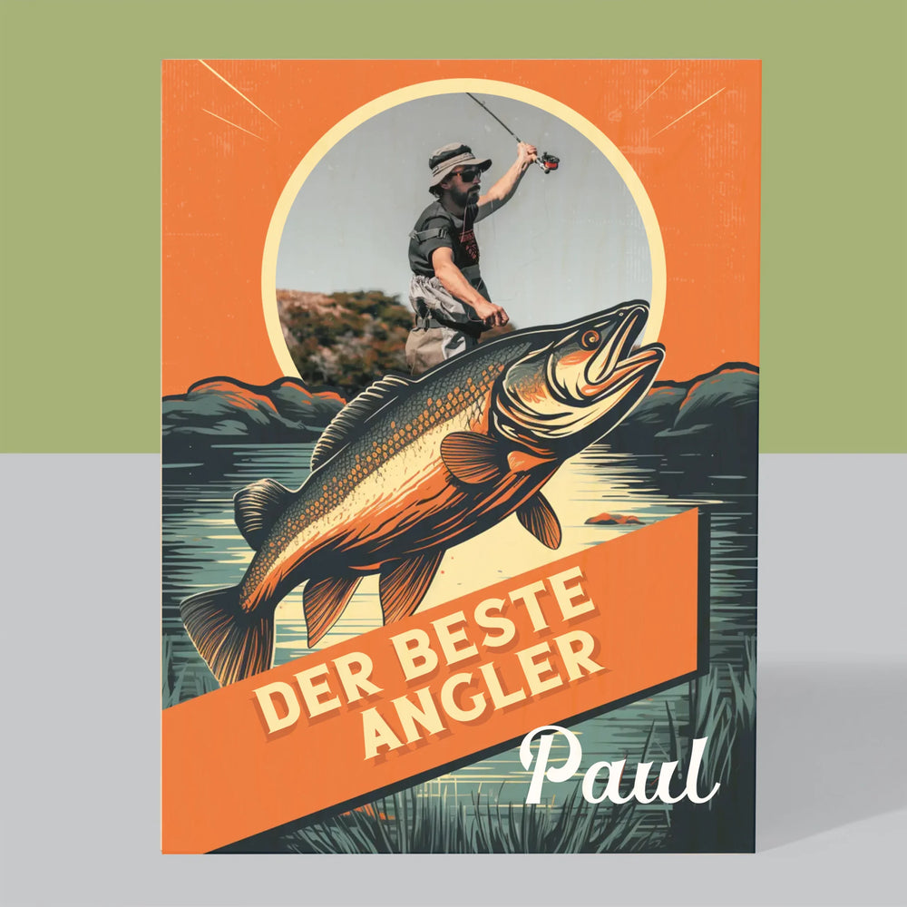 Foto Und Unterschrift: Der Beste Angler - Druck auf Holz - Vertikal