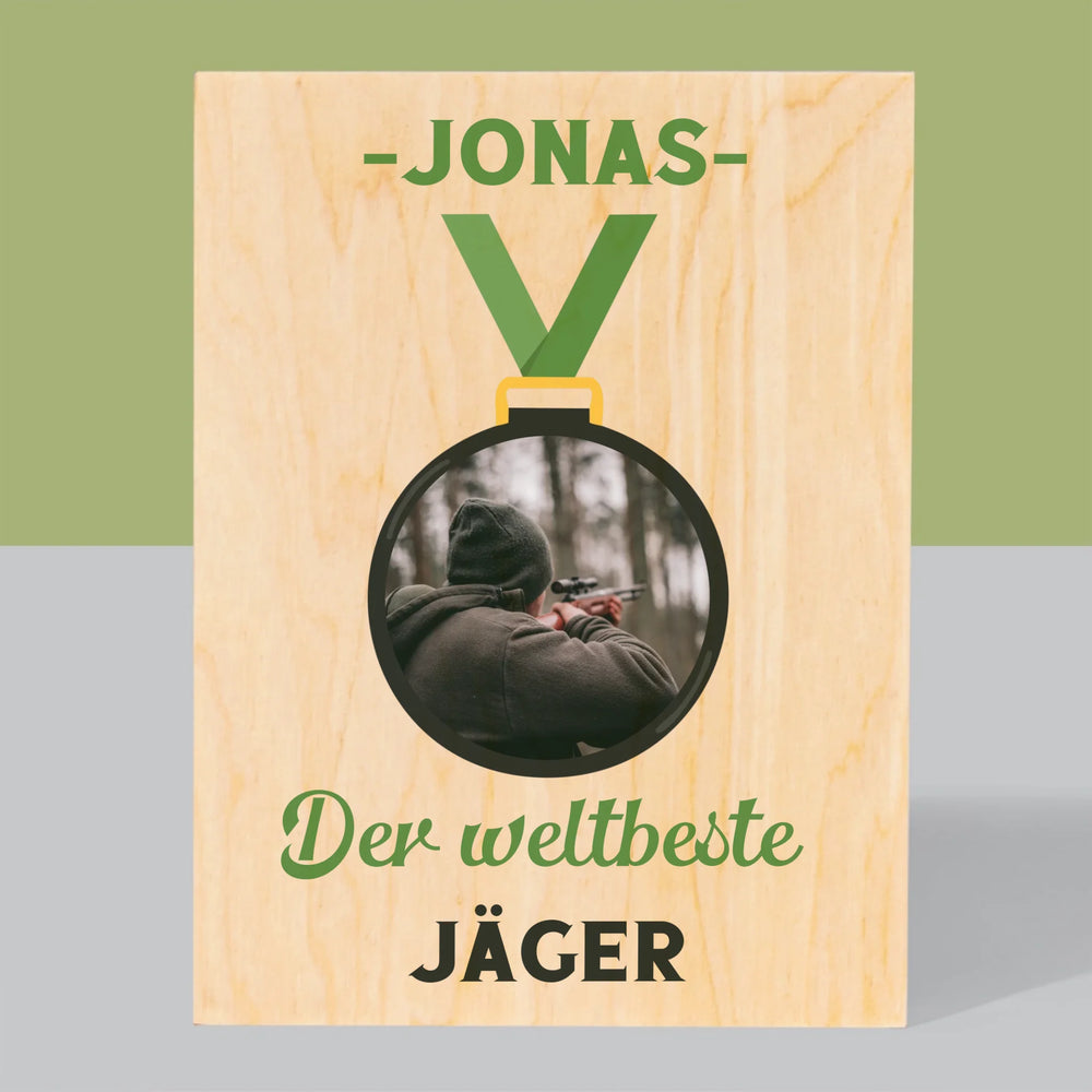 Foto Und Unterschrift: Der Weltbeste Jäger - Druck auf Holz - Vertikal