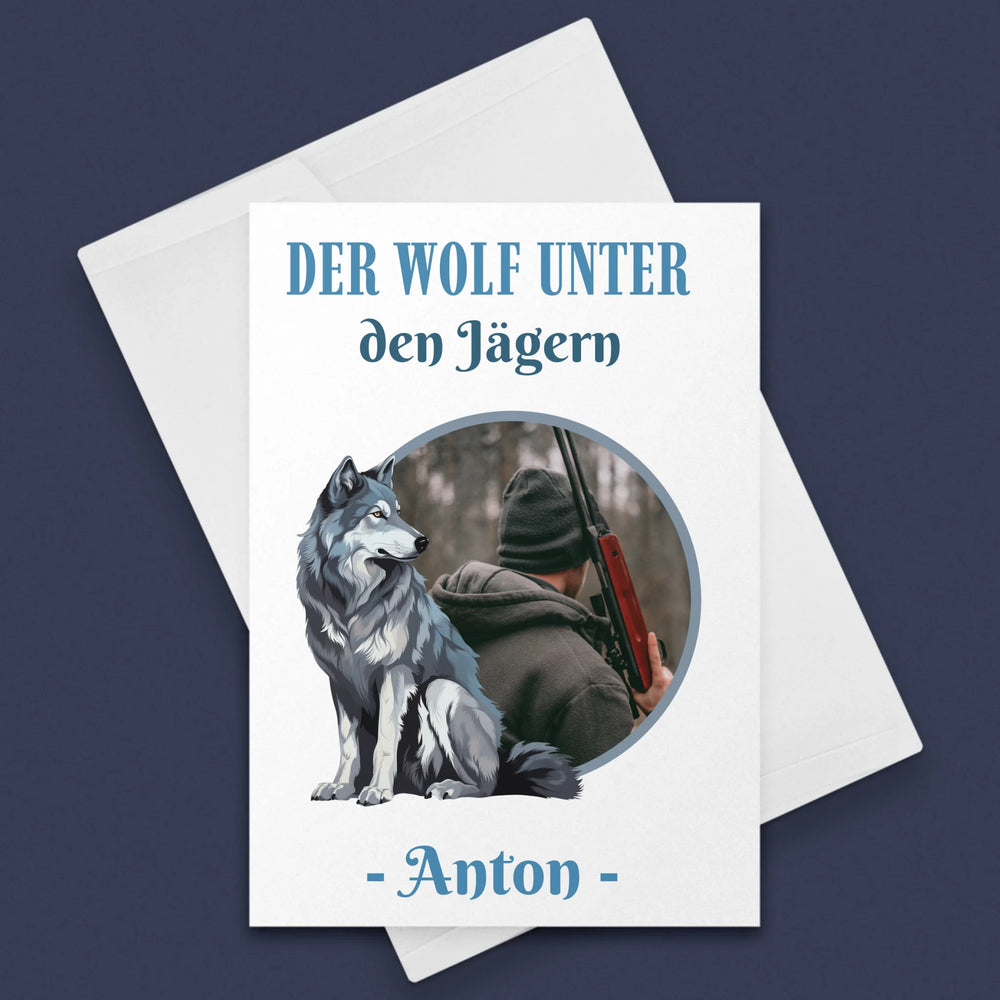 Foto Und Unterschrift: Der Wolf Unter Den Jägern - Glückwunschkarte