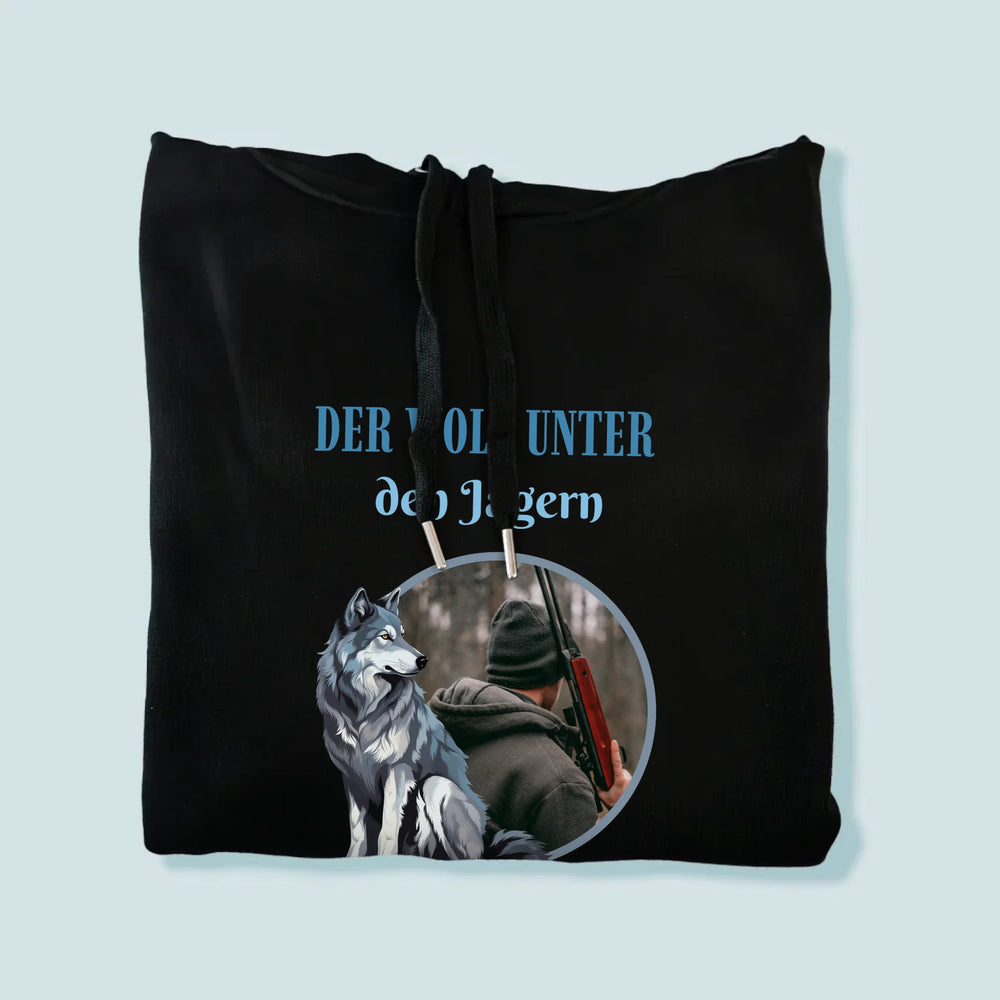 Foto Und Unterschrift: Der Wolf Unter Den Jägern - Kapuzenpullover für Herren