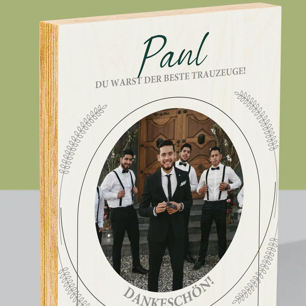 Foto Und Unterschrift: Du Warst Der Beste Trauzeuge - Druck auf Holz - Vertikal
