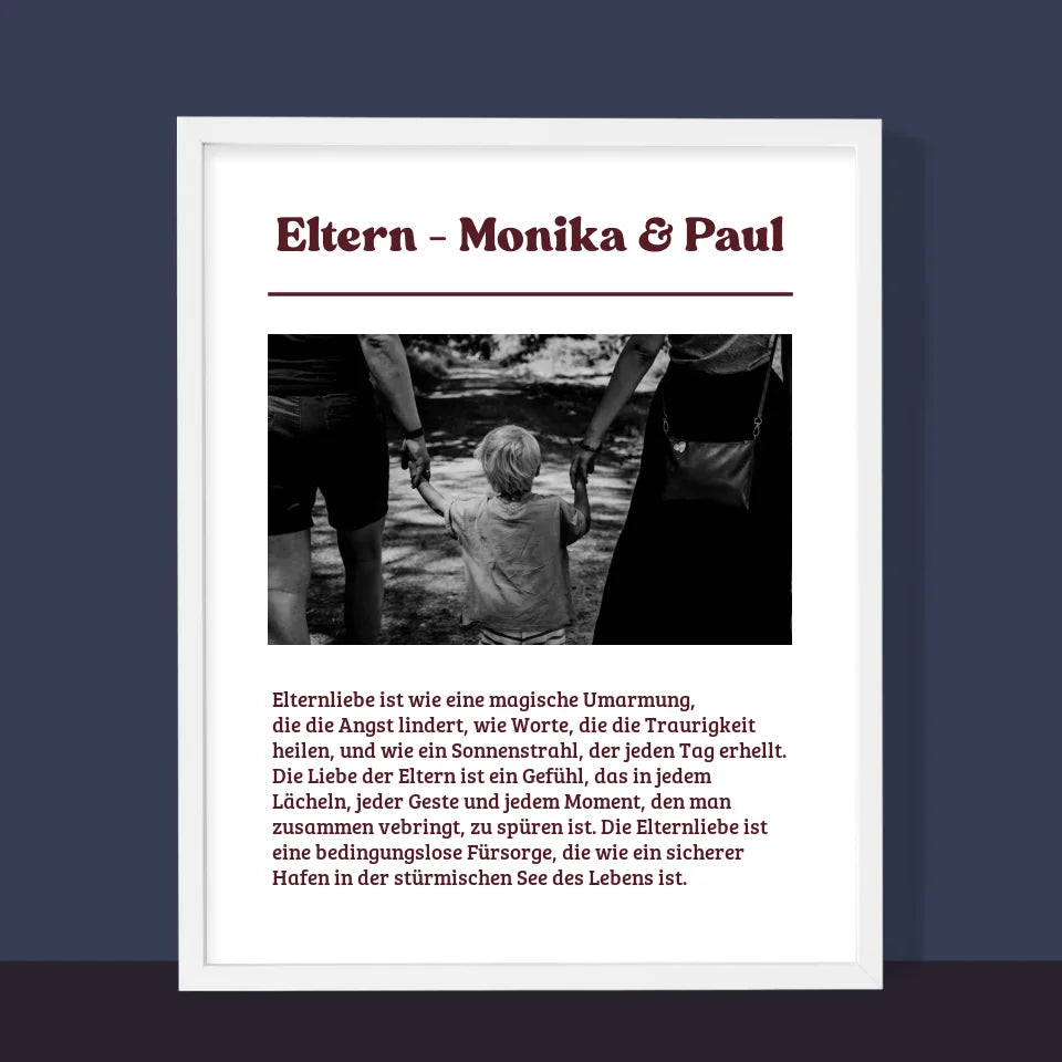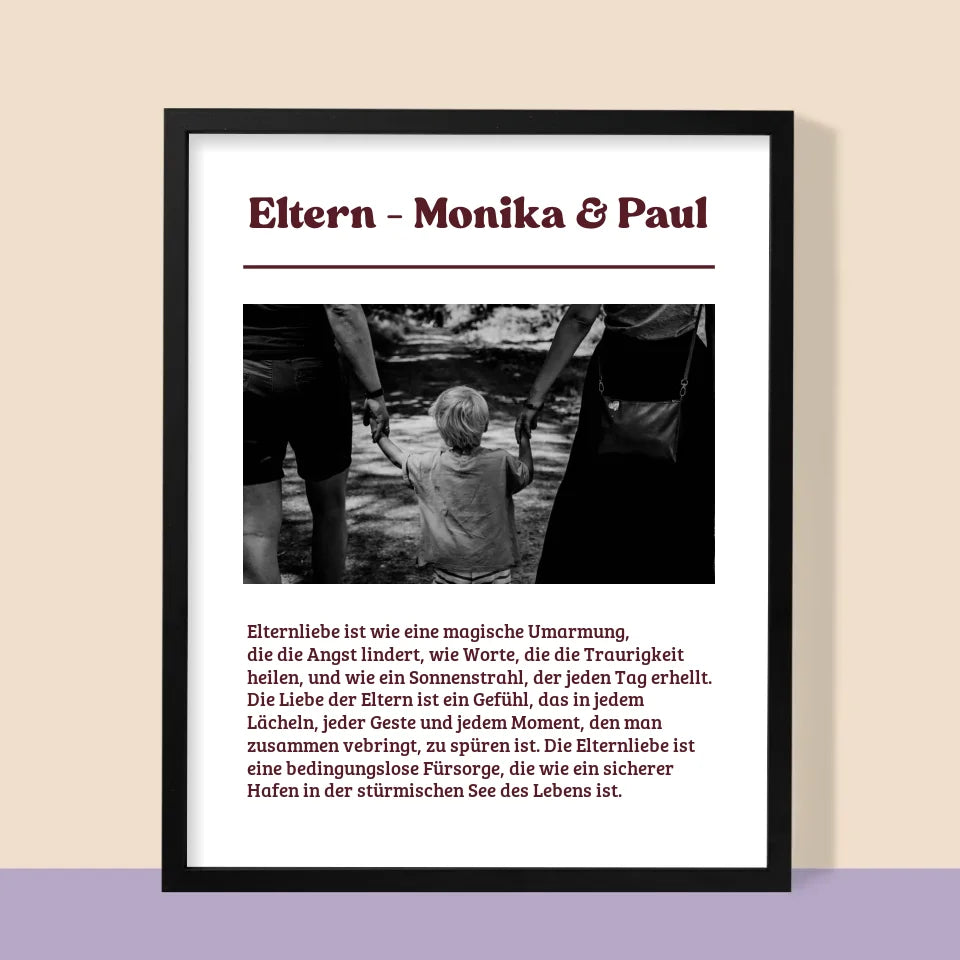 Foto Und Unterschrift: Elternliebe - Druck mit Rahmen - Vertikal