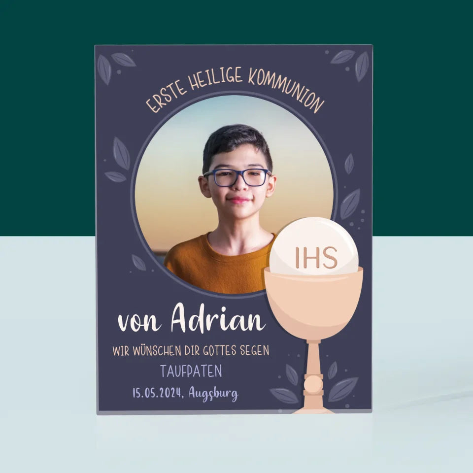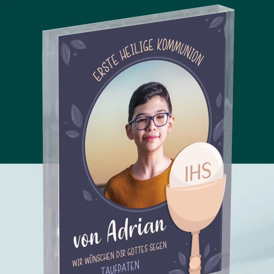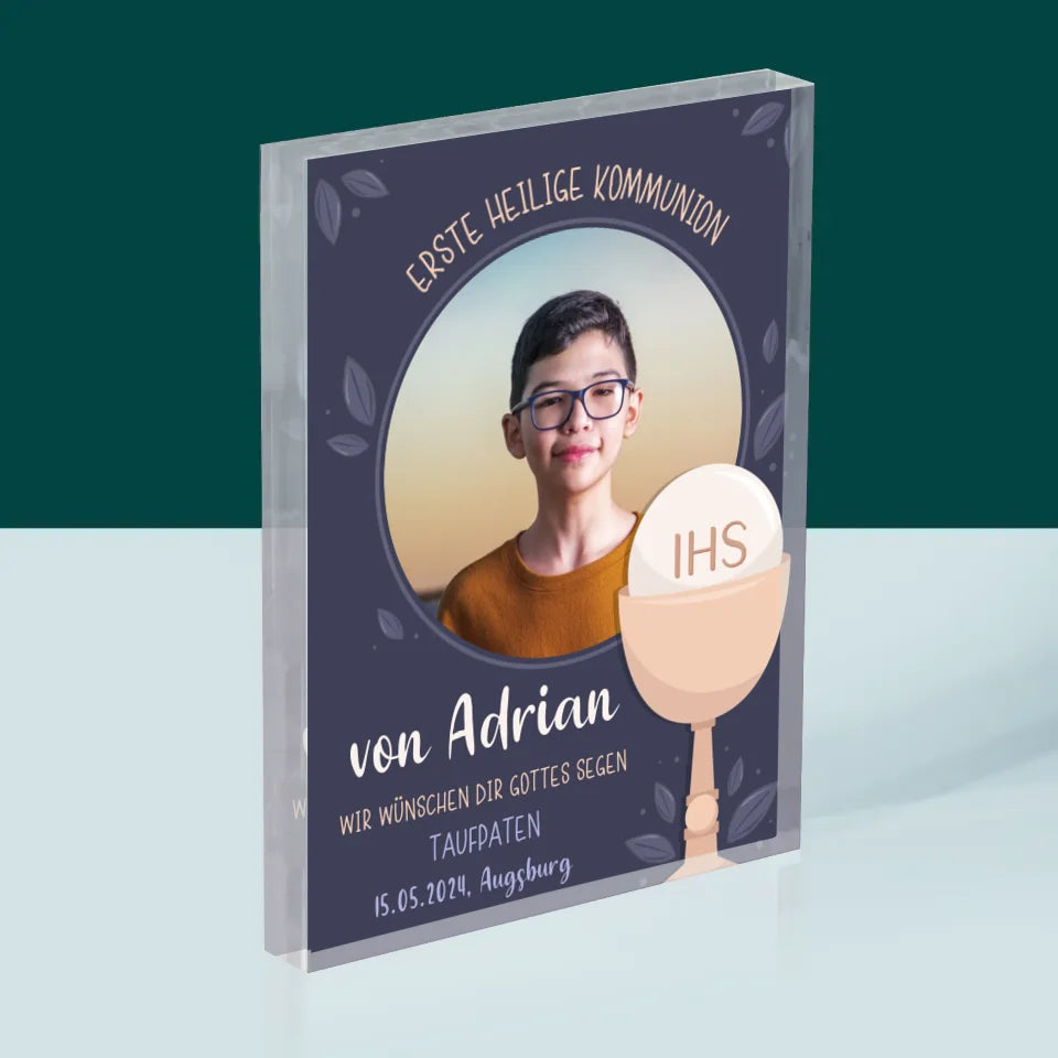 Foto Und Unterschrift: Erste Heilige Kommunion - Acrylblock - Vertikal