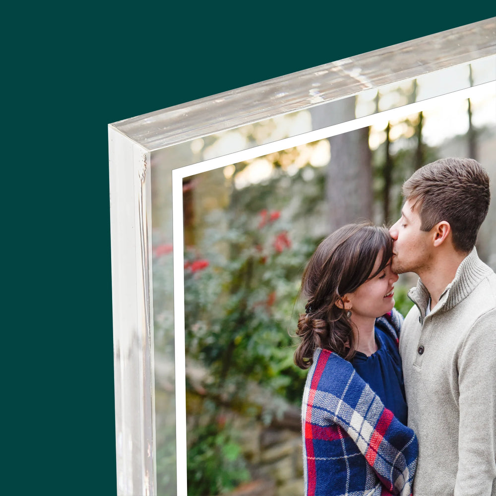 Druck auf einem 2 cm dicken, klaren Acrylblock (Plexiglas), individuell personalisiert.