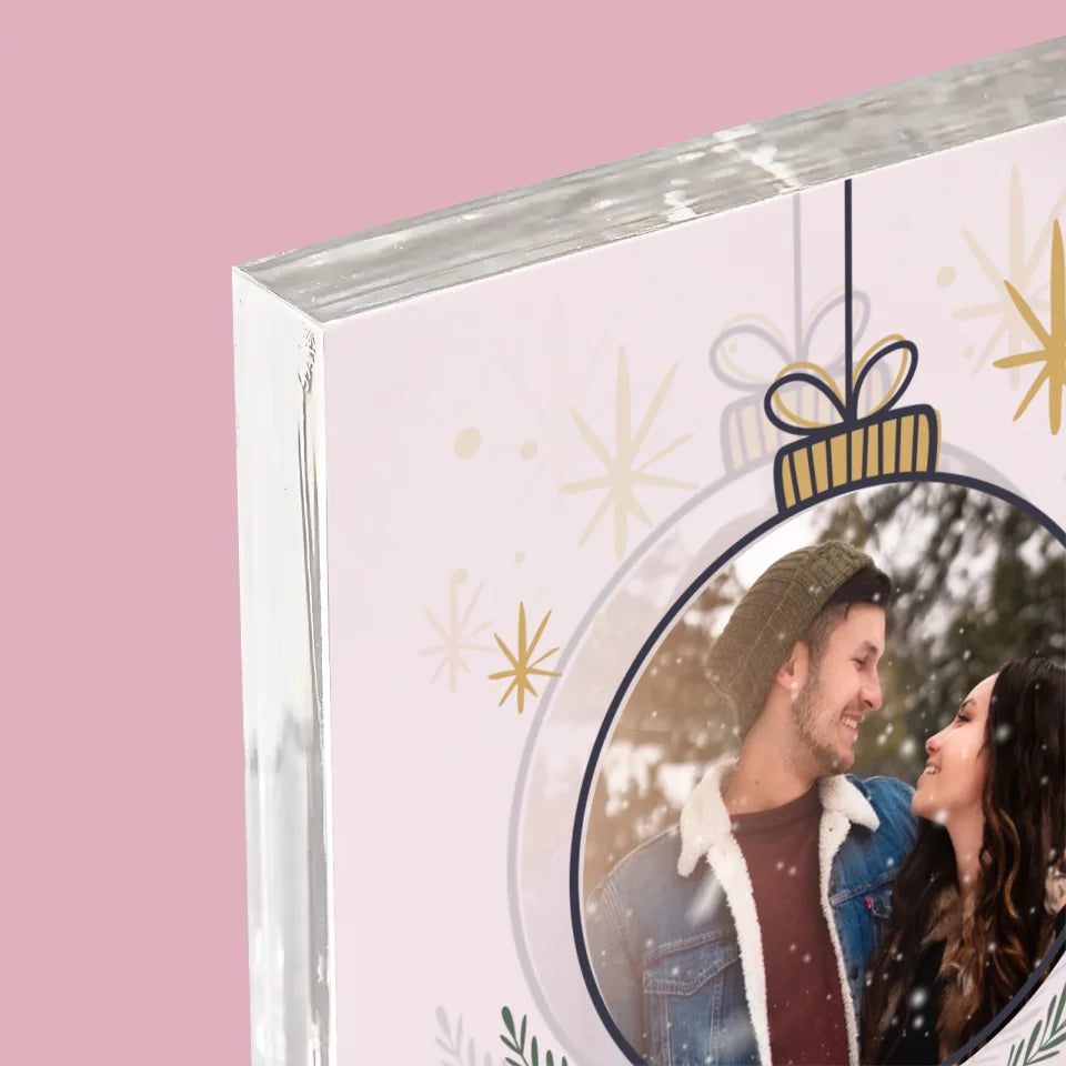 Foto Und Unterschrift: Frohe Weihnachten Weihnachtskugel - Acrylblock - Vertikal