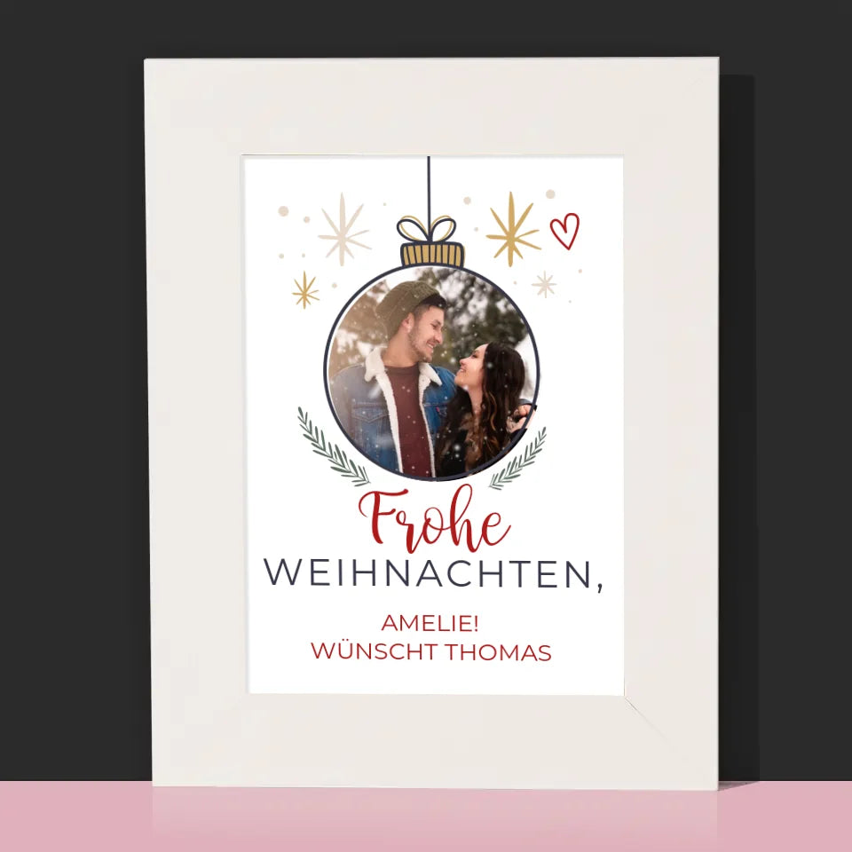 Foto Und Unterschrift: Frohe Weihnachten Weihnachtskugel - Bilderrahmen - Vertikal