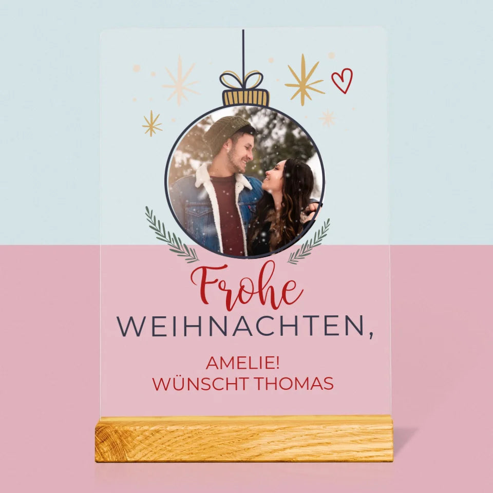 Foto Und Unterschrift: Frohe Weihnachten Weihnachtskugel - Druck auf Acrylglas