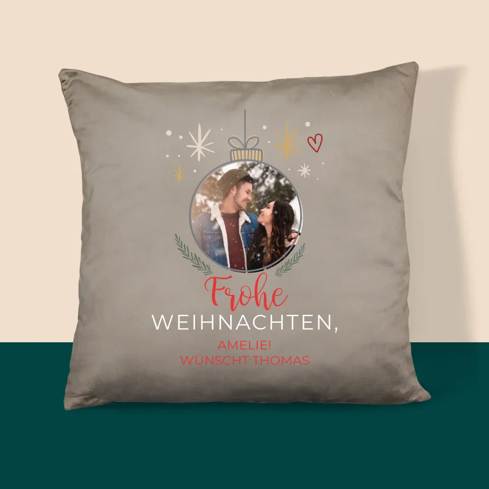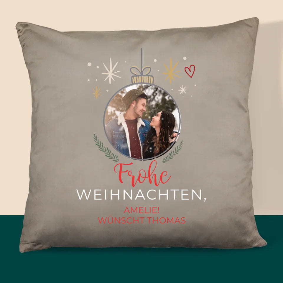 Foto Und Unterschrift: Frohe Weihnachten Weihnachtskugel - Kissen