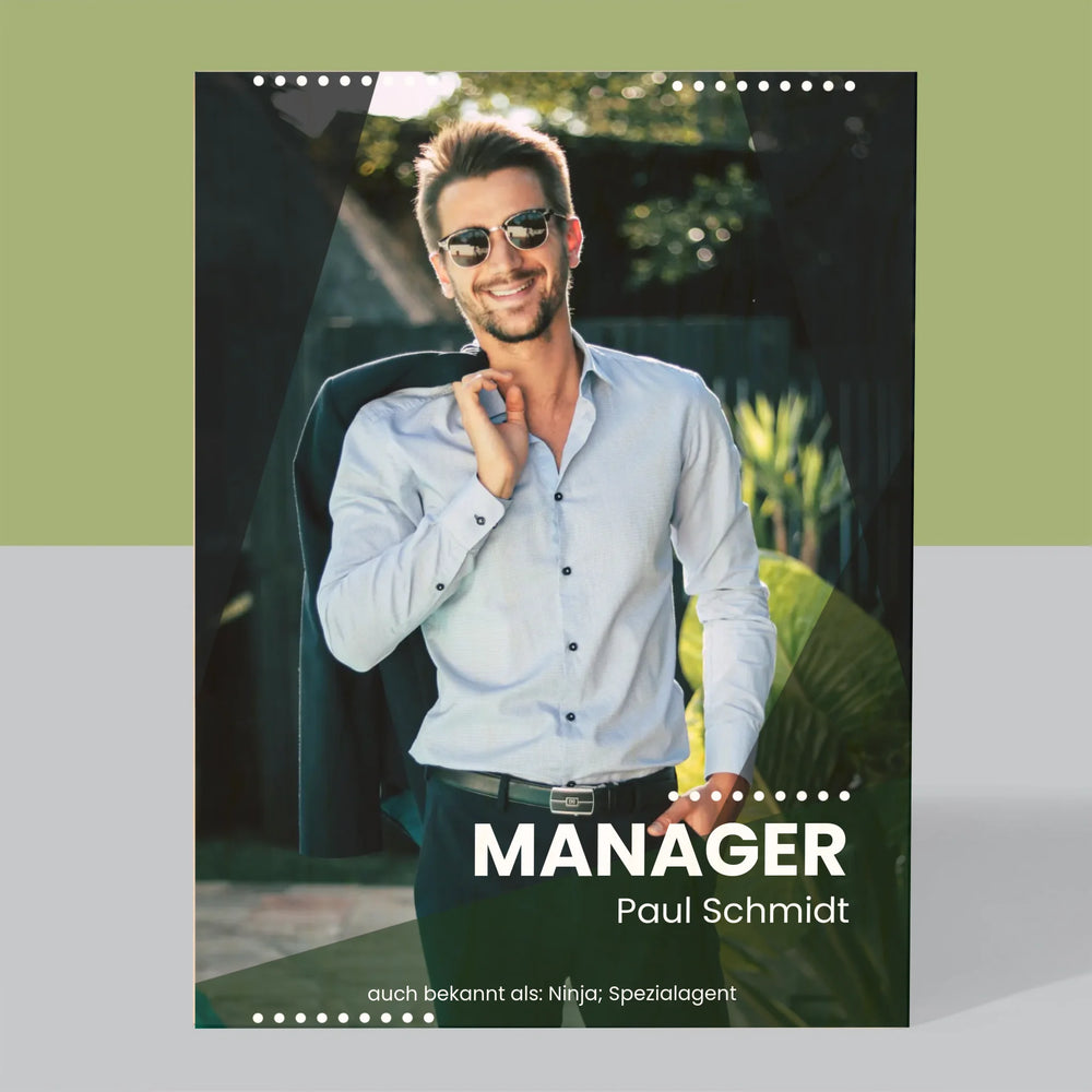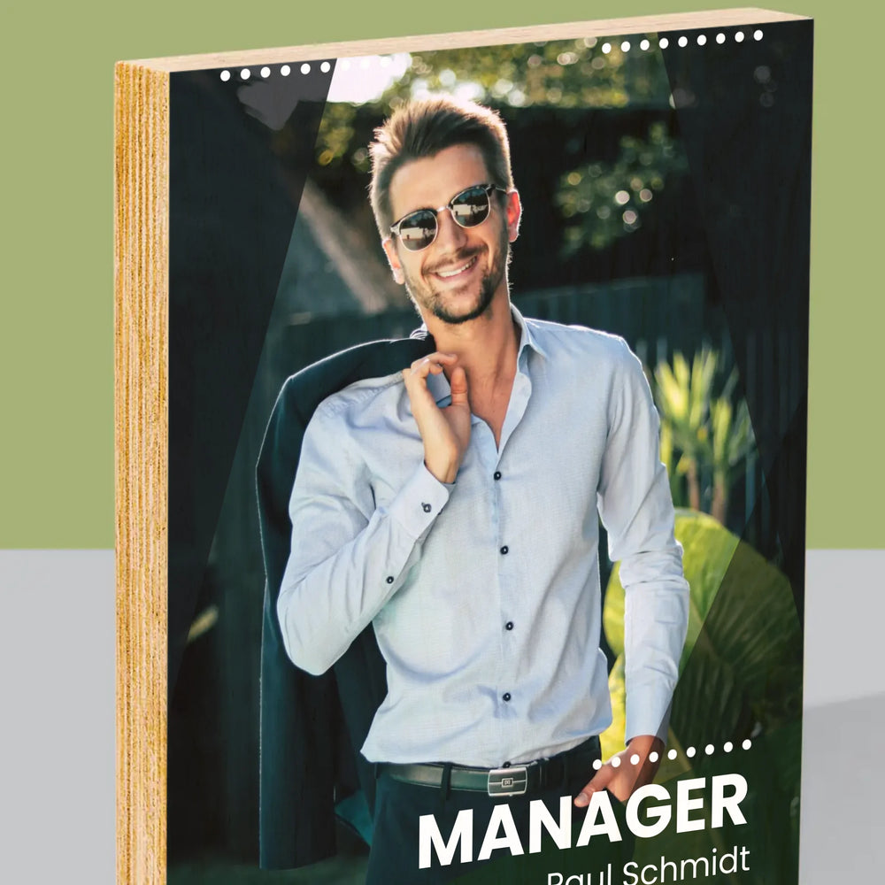 Foto Und Unterschrift: Geschäftsführer - Druck auf Holz - Vertikal