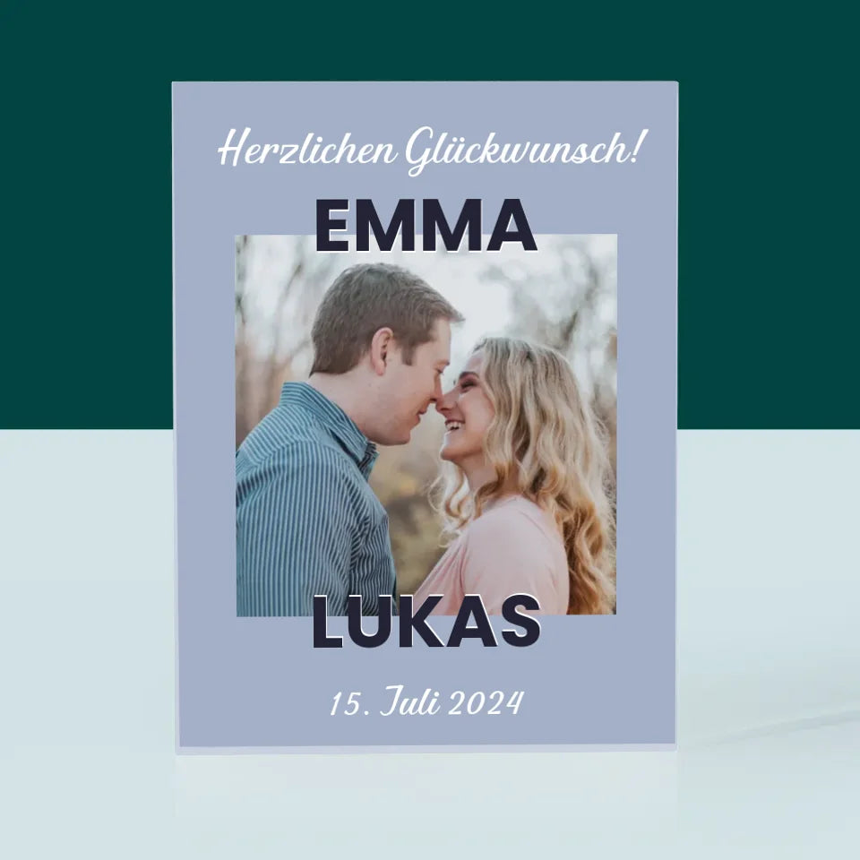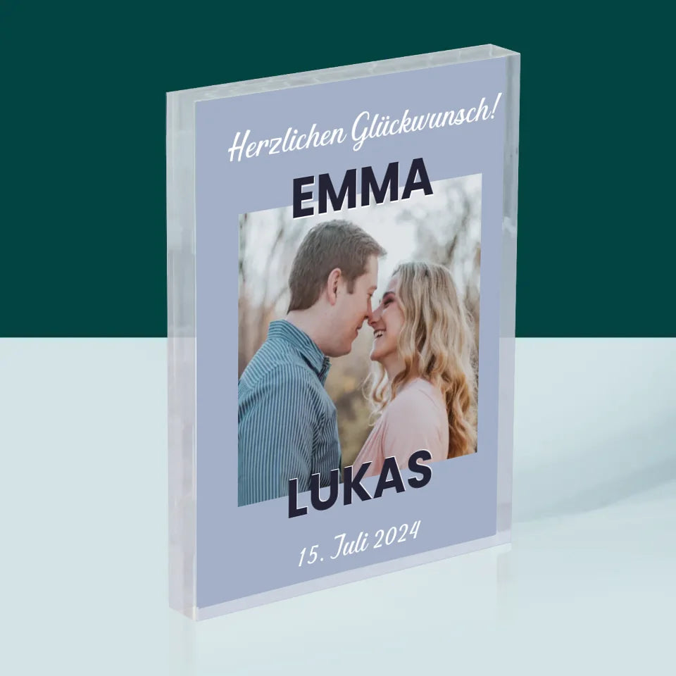 Foto Und Unterschrift: Glückwünsche Zur Hochzeit - Acrylblock - Vertikal