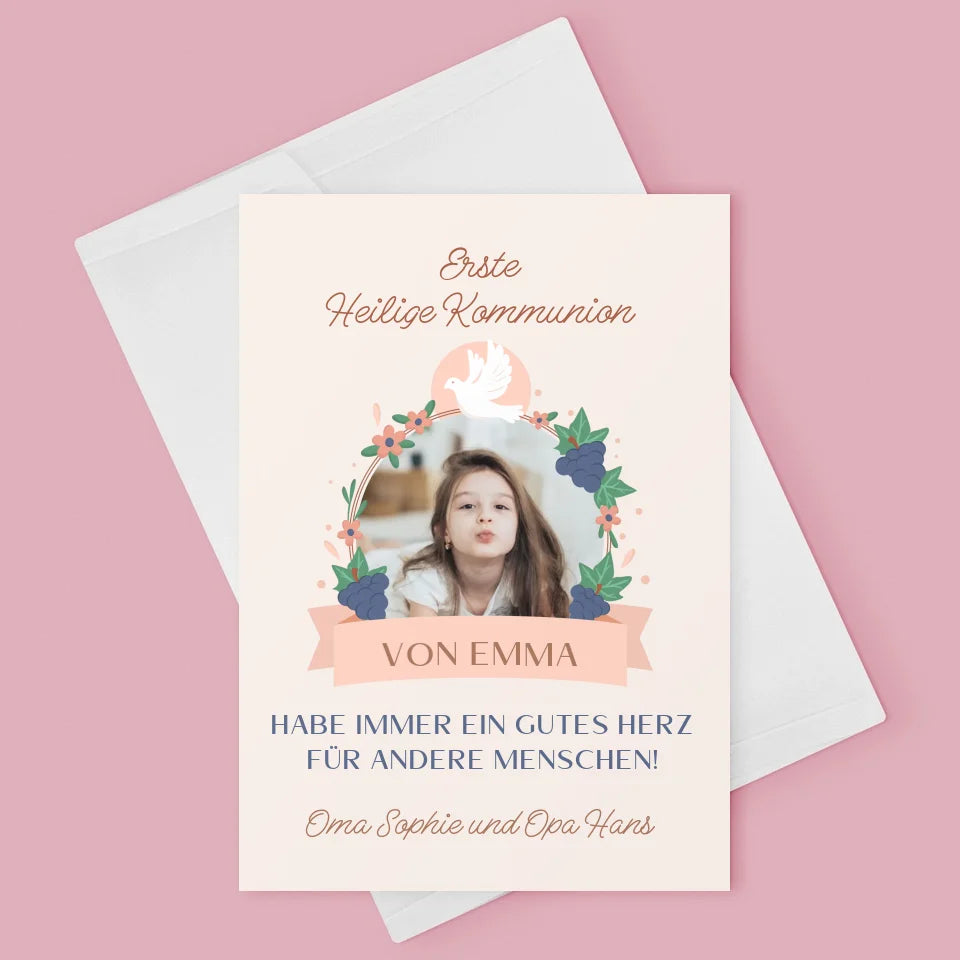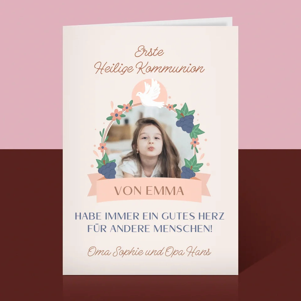 Foto Und Unterschrift: Gutes Herz Kommunion - Glückwunschkarte