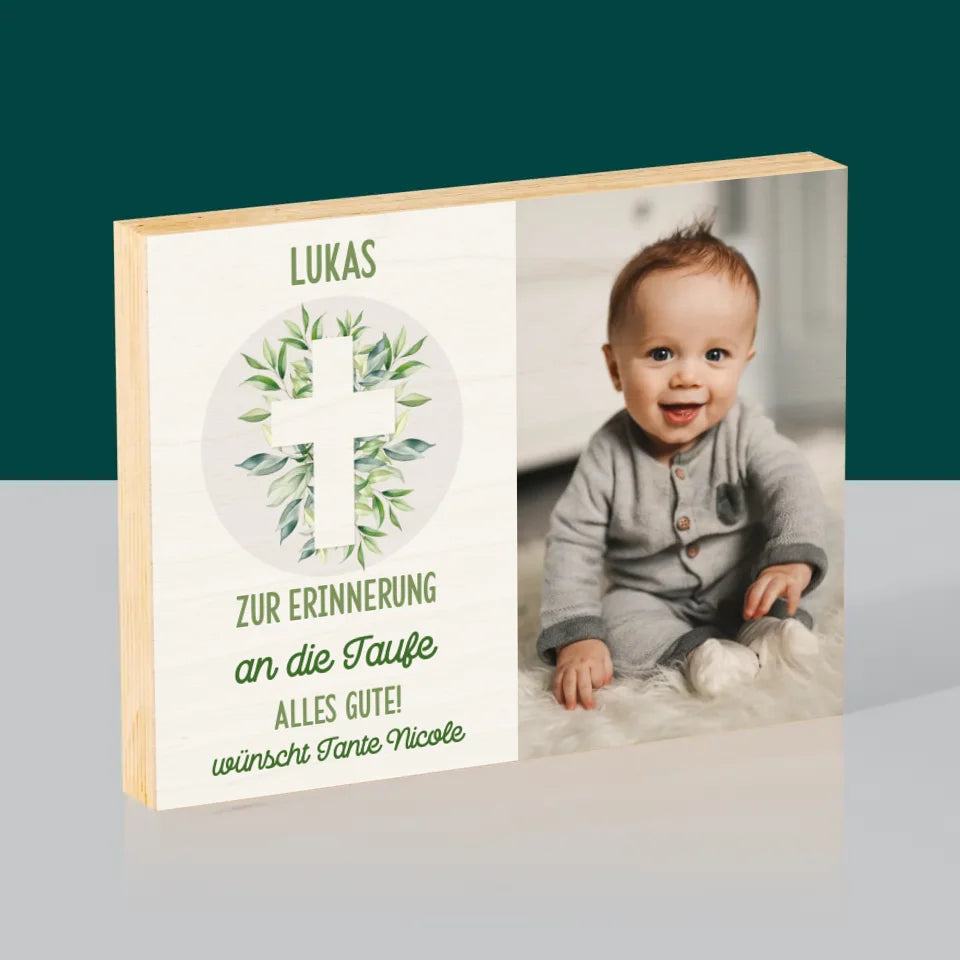Foto Und Unterschrift: Heilige Taufe Blätter - Druck auf Holz - Horizontal