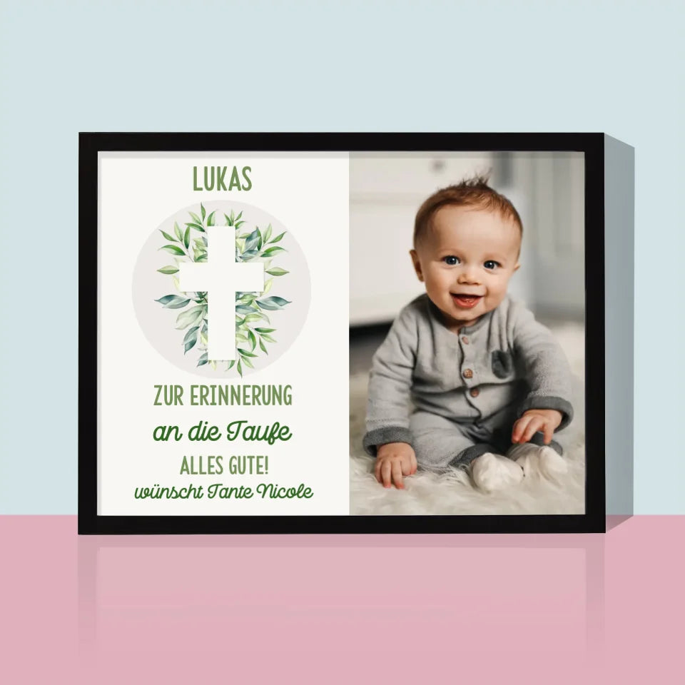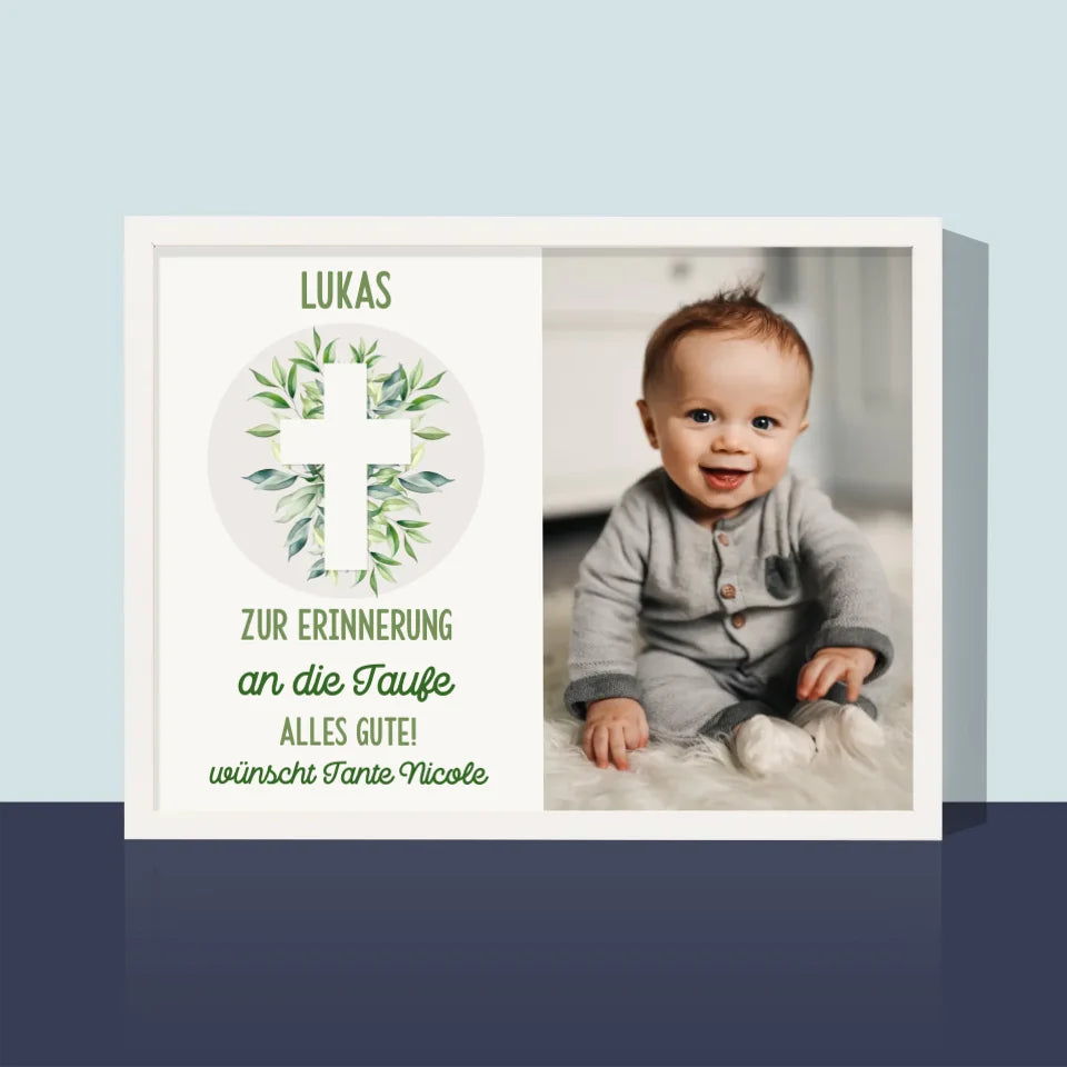 Foto Und Unterschrift: Heilige Taufe Blätter - Druck mit Rahmen 30x40 - Horizontal