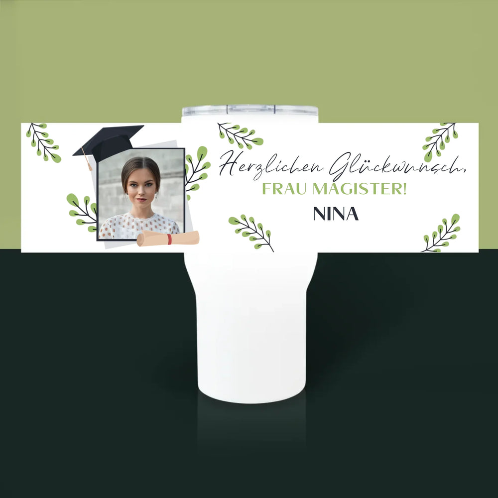 Foto Und Unterschrift: Herzlichen Glückwunsch - Thermobecher weiß