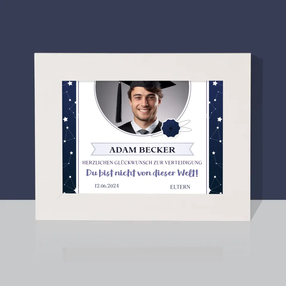 Foto Und Unterschrift: Herzlichen Glückwunsch Zur Verteidigung - Bilderrahmen - Vertikal