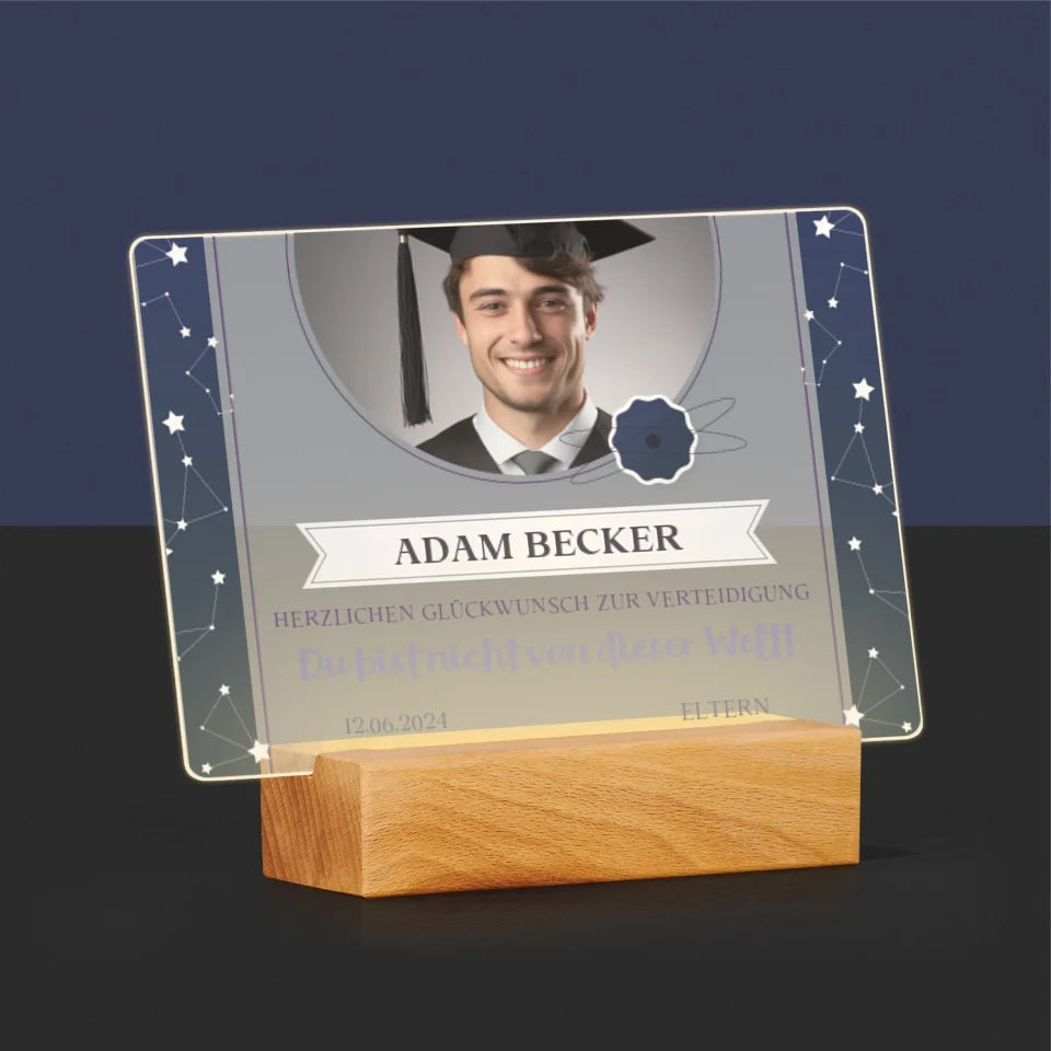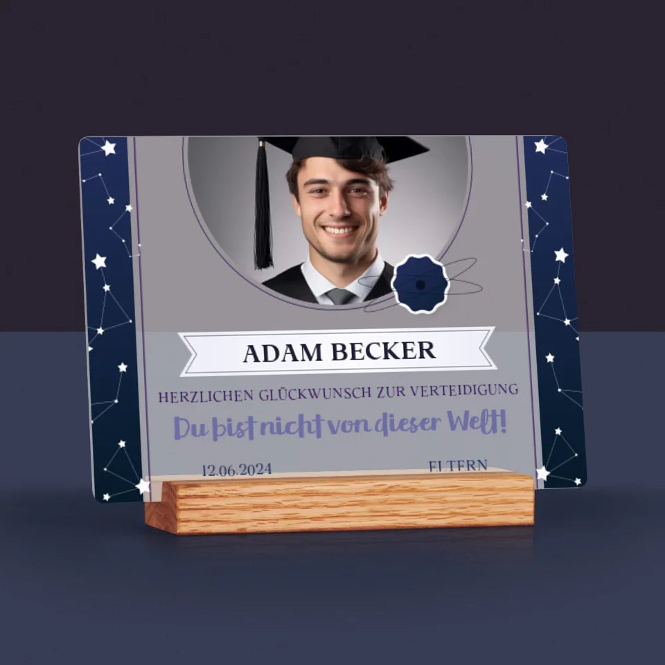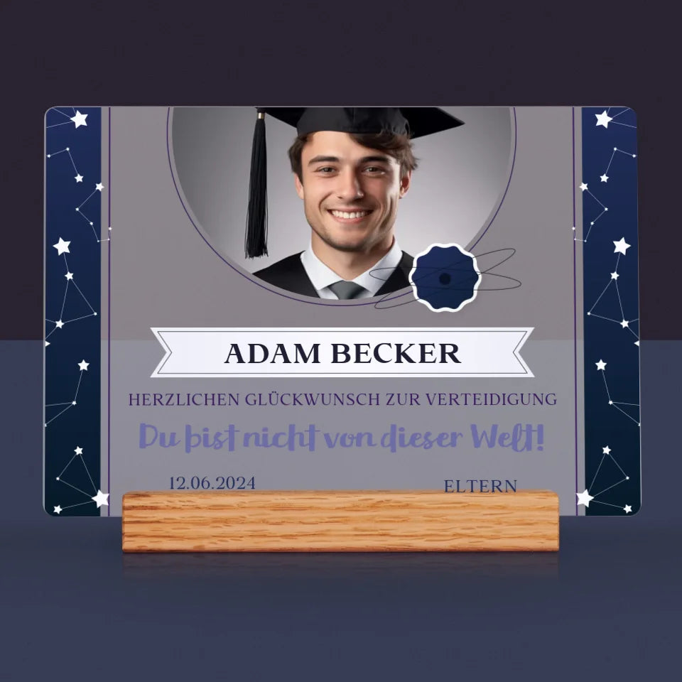 Foto Und Unterschrift: Herzlichen Glückwunsch Zur Verteidigung - Druck auf Acrylglas mit LED-Beleuchtung