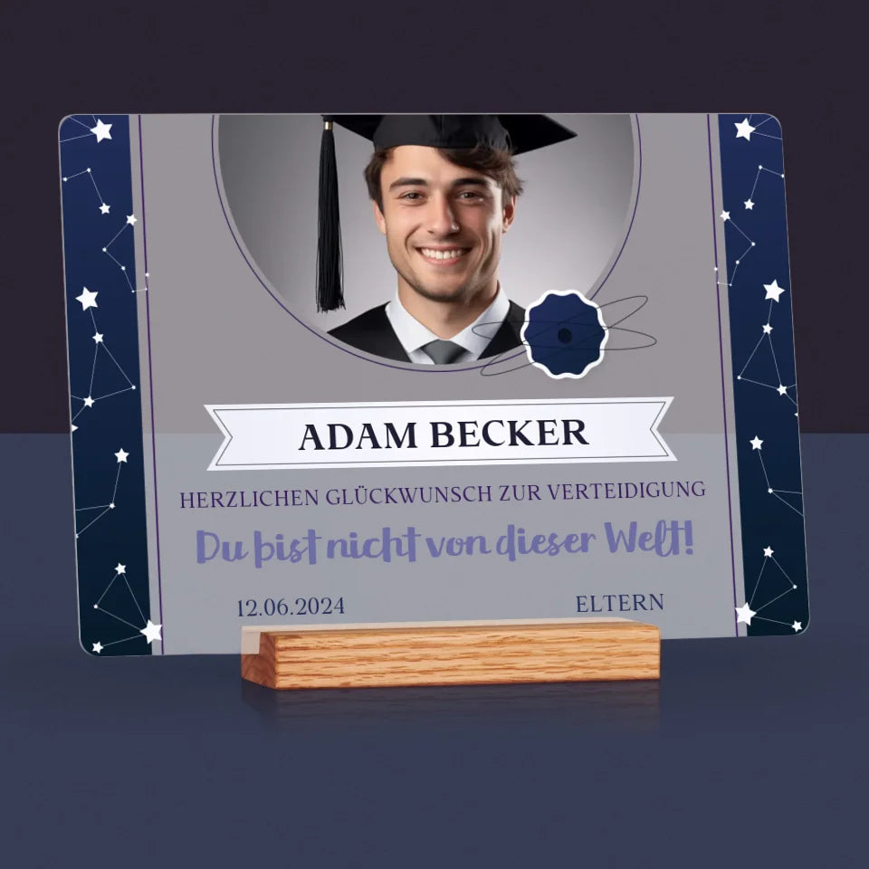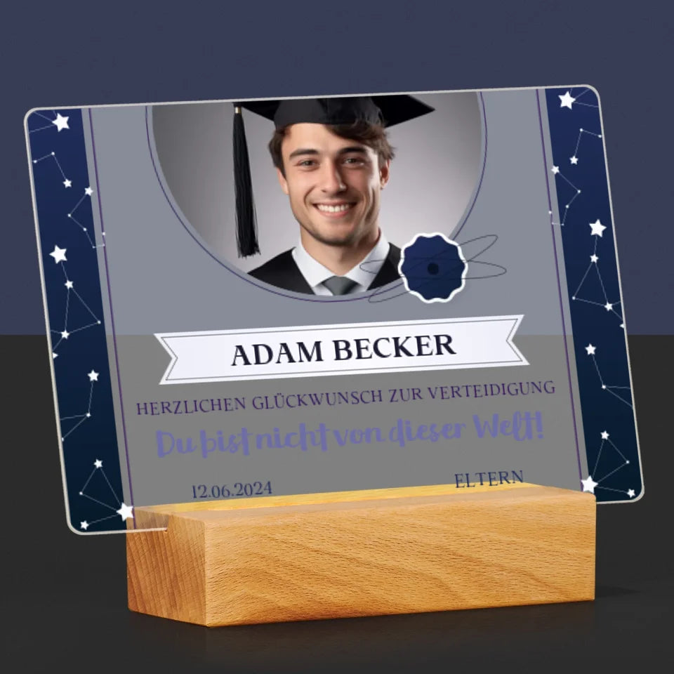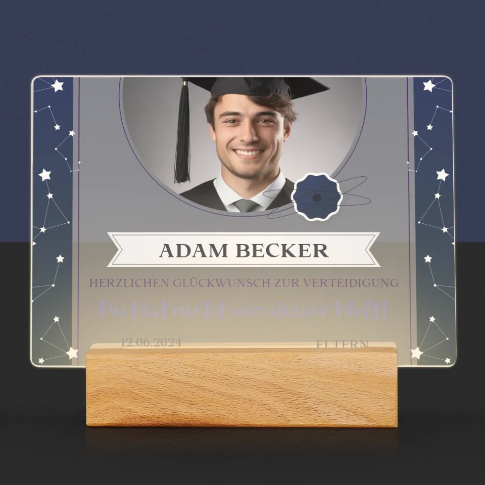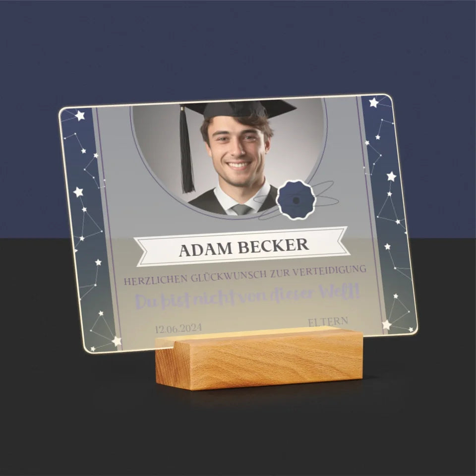 Foto Und Unterschrift: Herzlichen Glückwunsch Zur Verteidigung - Druck auf Acrylglas mit LED-Beleuchtung