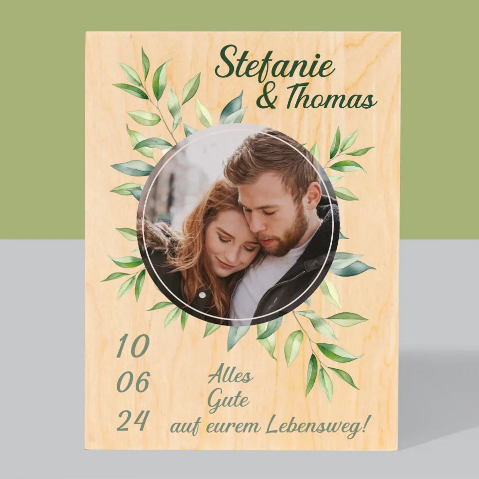 Foto Und Unterschrift: Hochzeitsblätter - Druck auf Holz - Vertikal