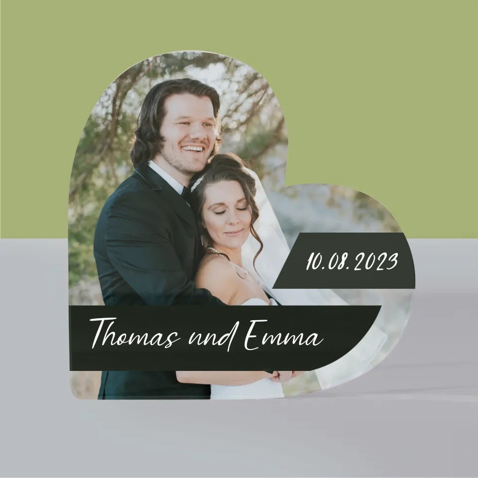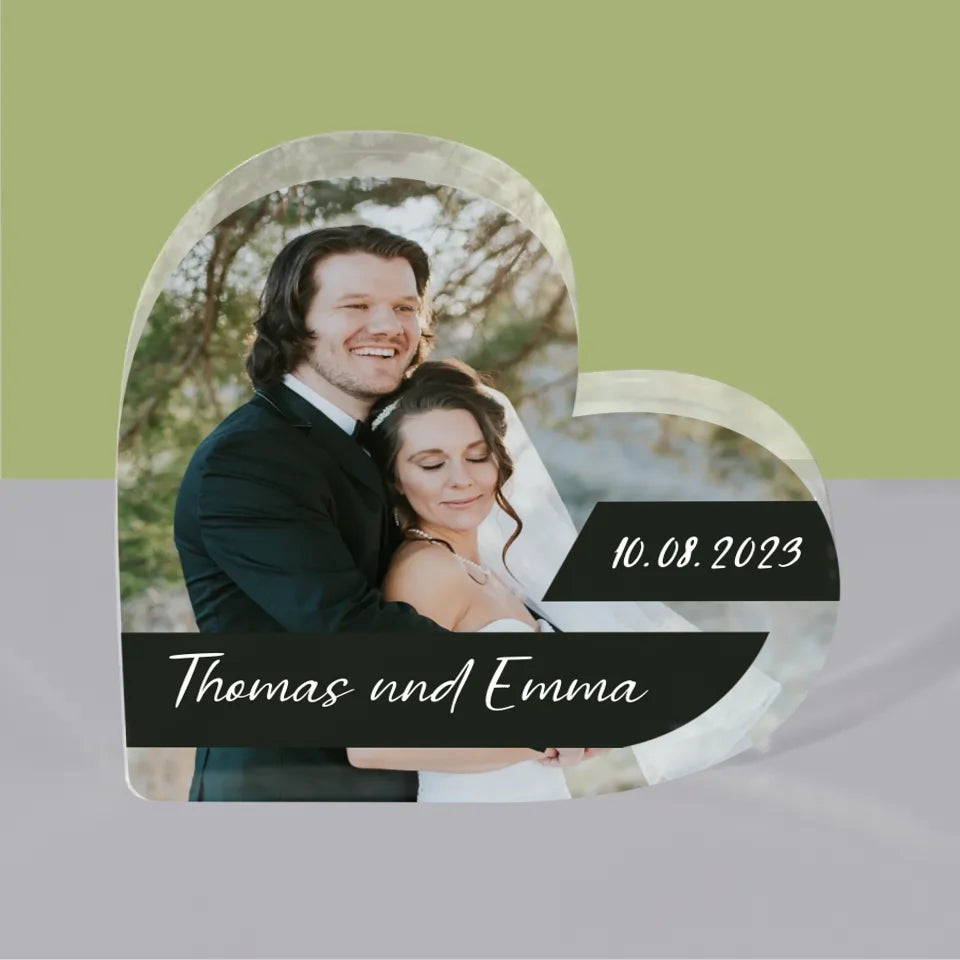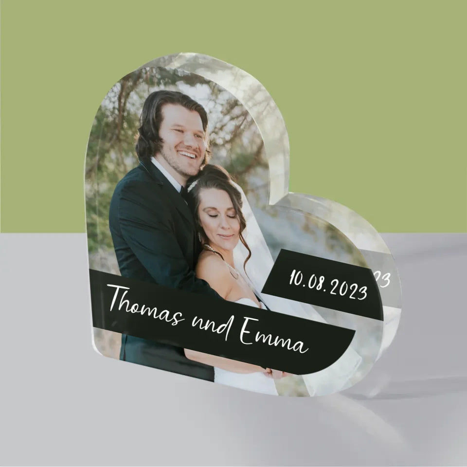 Foto Und Unterschrift: Hochzeitsfoto - Acrylblock Herz