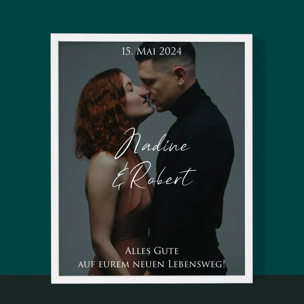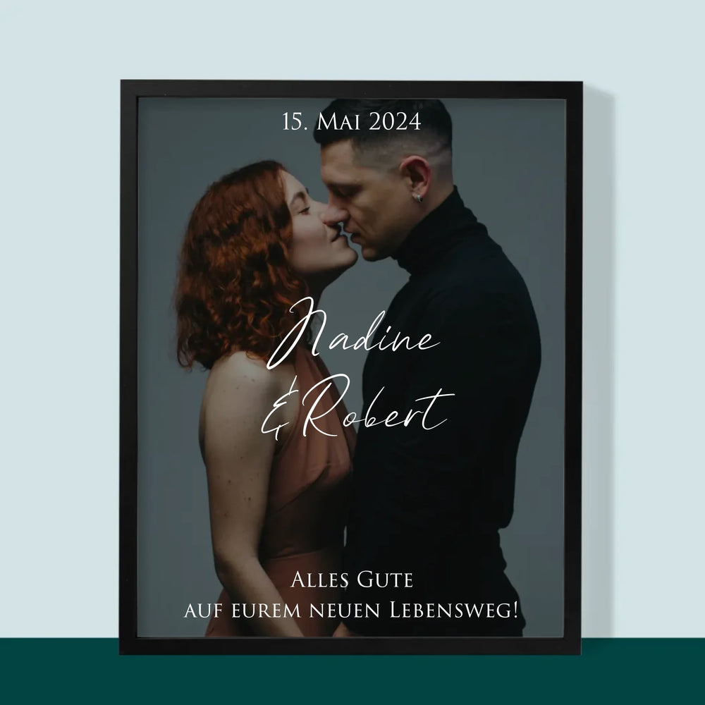 Foto Und Unterschrift: Hochzeitsfoto Glückwünsche - Druck Mit Rahmen 30X40