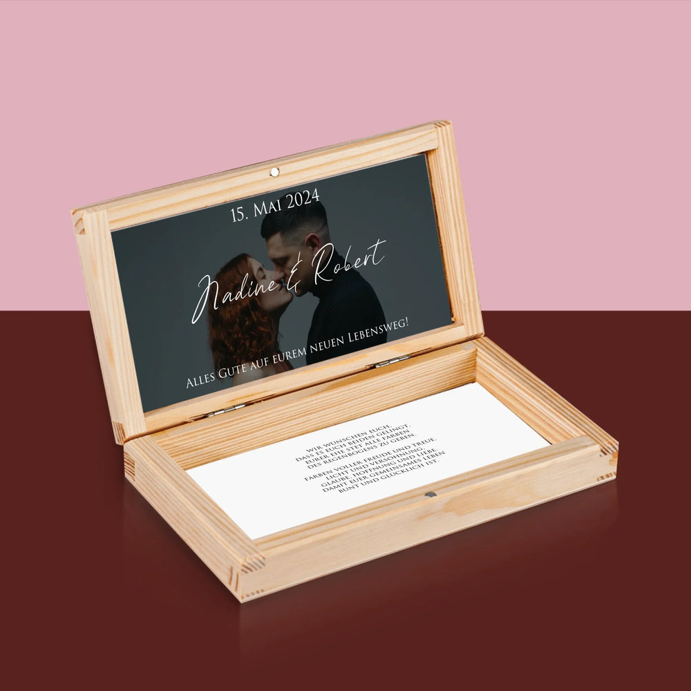 Foto Und Unterschrift: Hochzeitsfoto Glückwünsche - Holzkassette