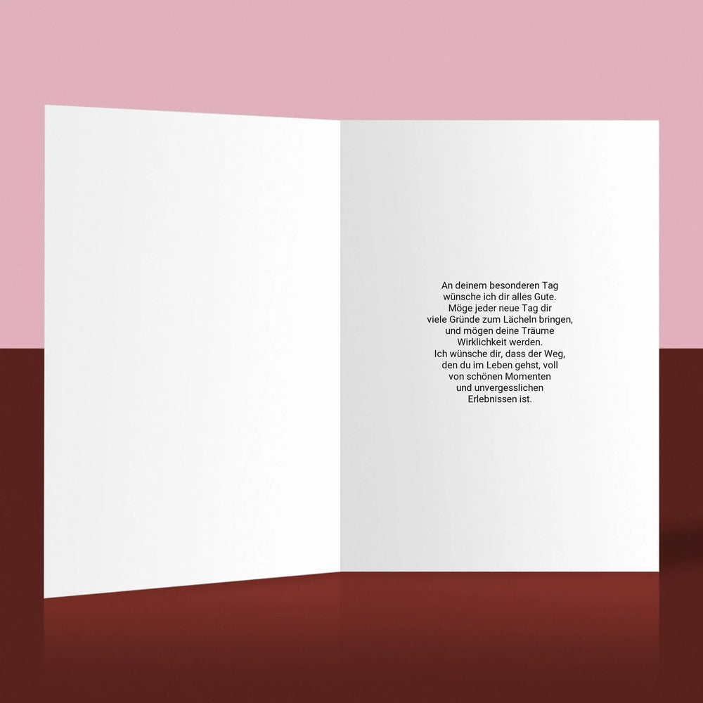 Personalisierte Glückwunschkarte für einen besonderen Anlass. Wählen Sie Ihre eigenen Fotos aus und erstellen Sie ein einzigartiges Geschenk!