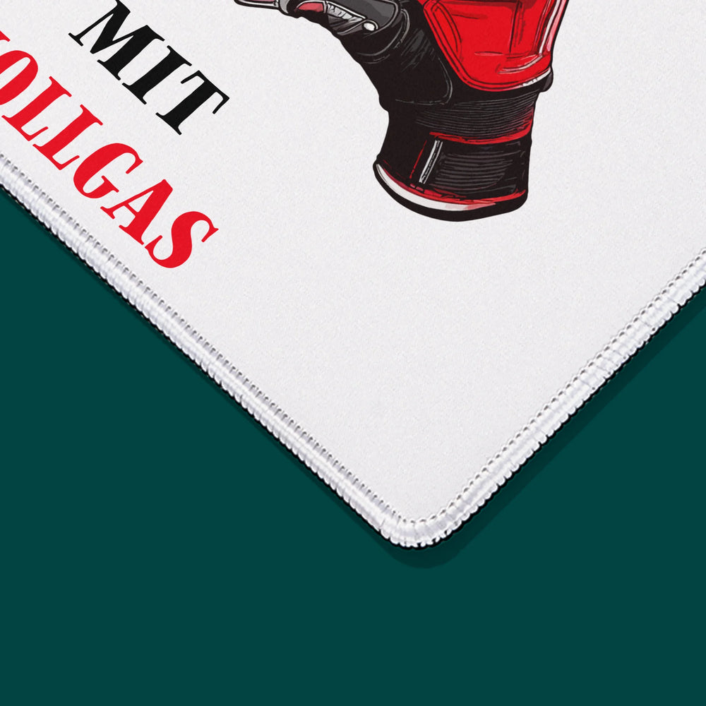 Die Unterseite des Mauspads besteht aus hochwertigem schwarzem Gummi und die Oberseite aus weißem Polyester.